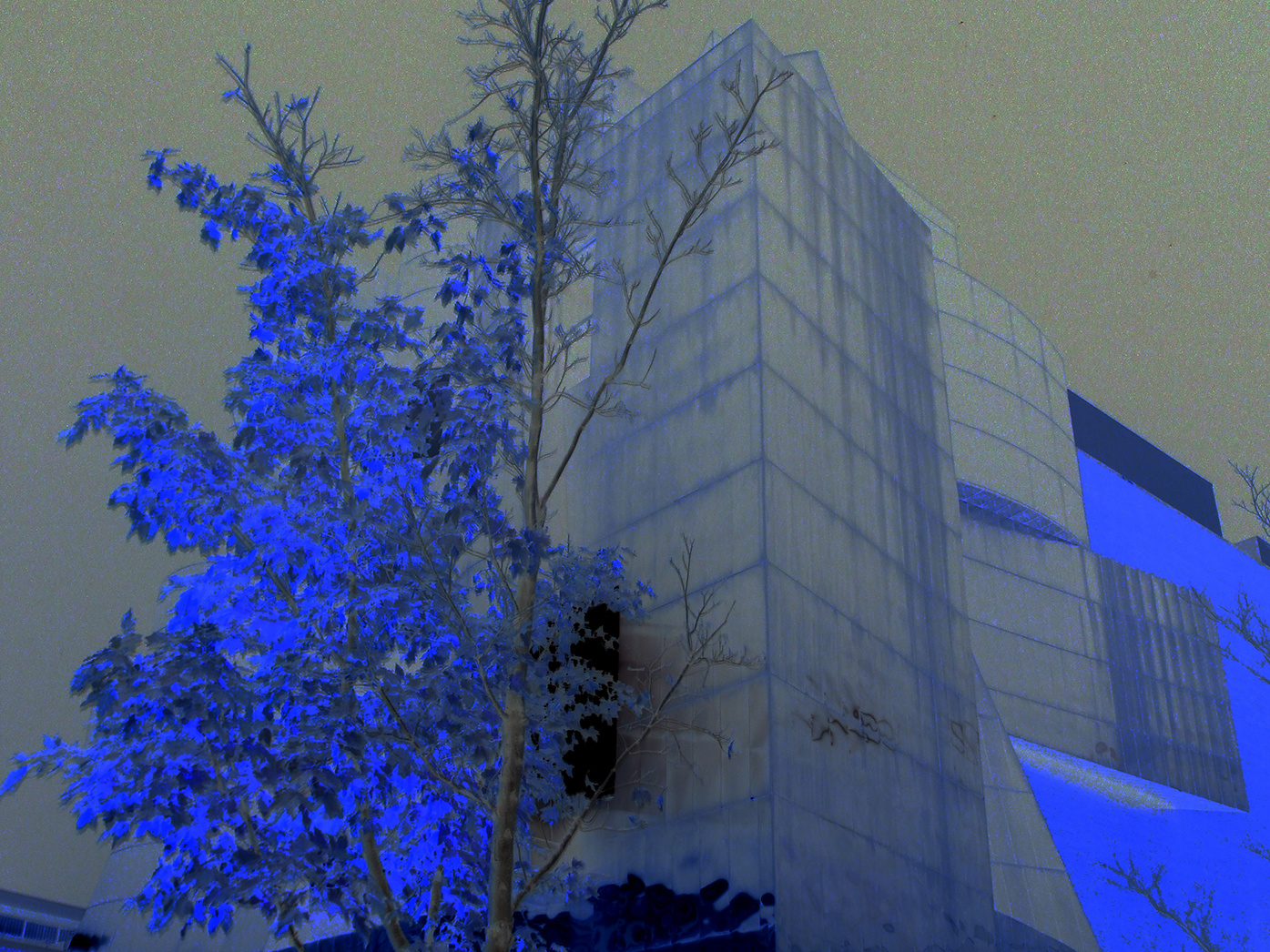 Photographed on a chilly February night in Minneapolis and then using a reverse image process to create negative of the original image. This resulted in a blue and gold effect to my delight.