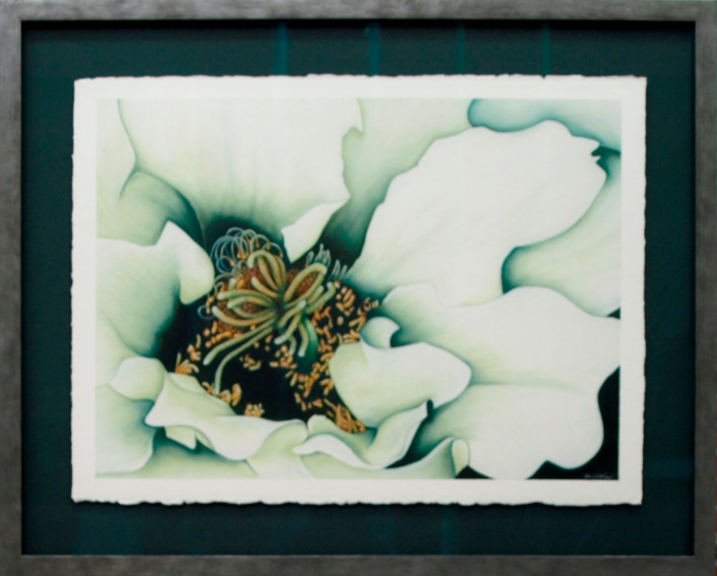 Drawing; (pastel; pencil, Coloring object name 2), rectangular paper and frame; Arches paper, pastel and colored pencil; The flower in “Queen of the Night” is a night blooming cactus flower. Purchased by the Littleton Fine Arts Board from the Littleton Museum "Own an Original Show" 2017