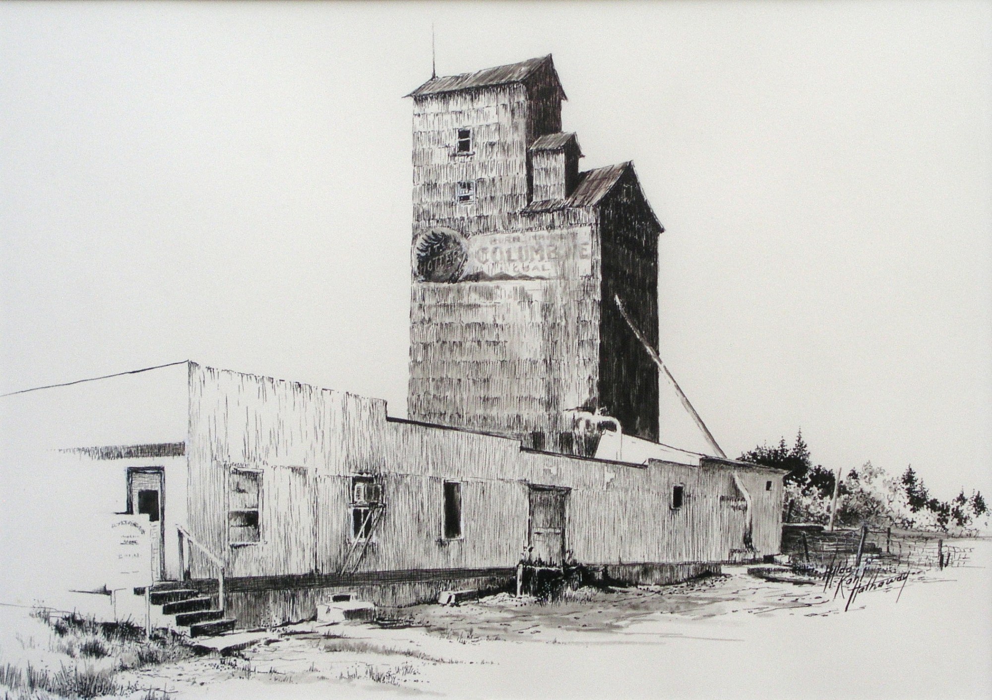 Pen and ink entitled "The Columbine Mercantile Co." by Hylda Kohl Hathaway.