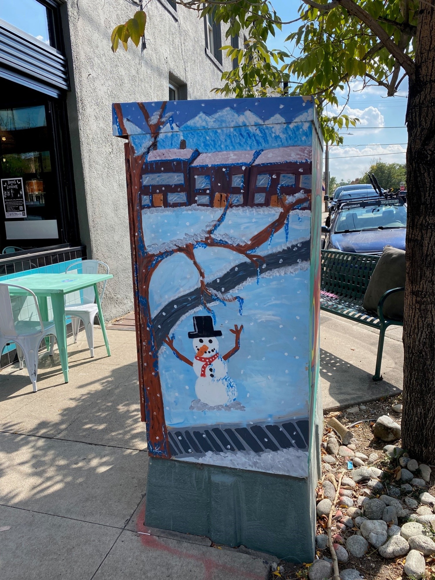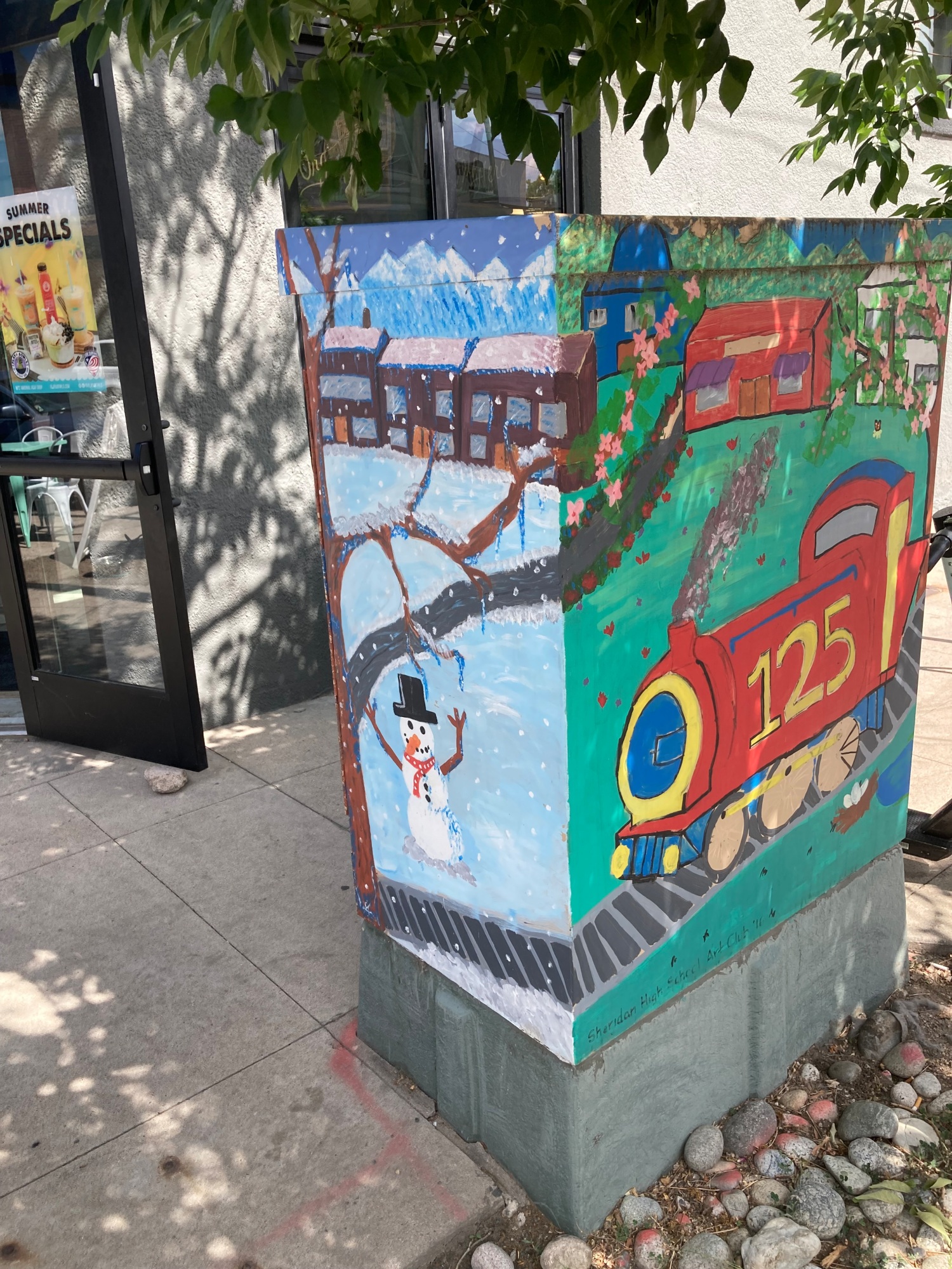 One of 10 traffic boxes as part of partnership between City of Littleton and Sudee Floyd of Outnumbered Gallery. Originally painted spring 2016.