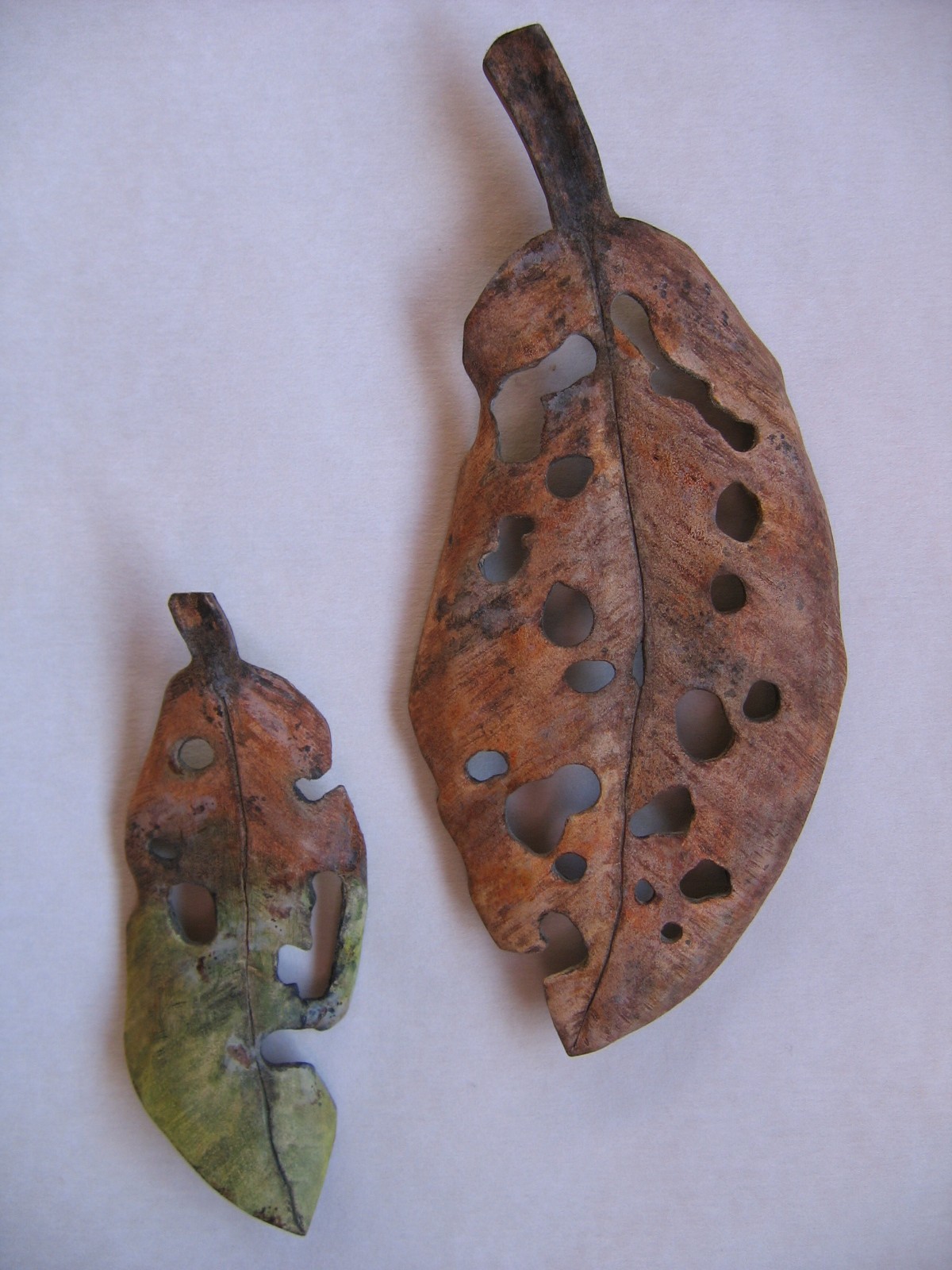 Form, surface and shadow are an integral part of my artworks. The carved leaves sit closer to 3D, they hang out from the wall which gives movement and shadow, reminiscent of the dappled forest.