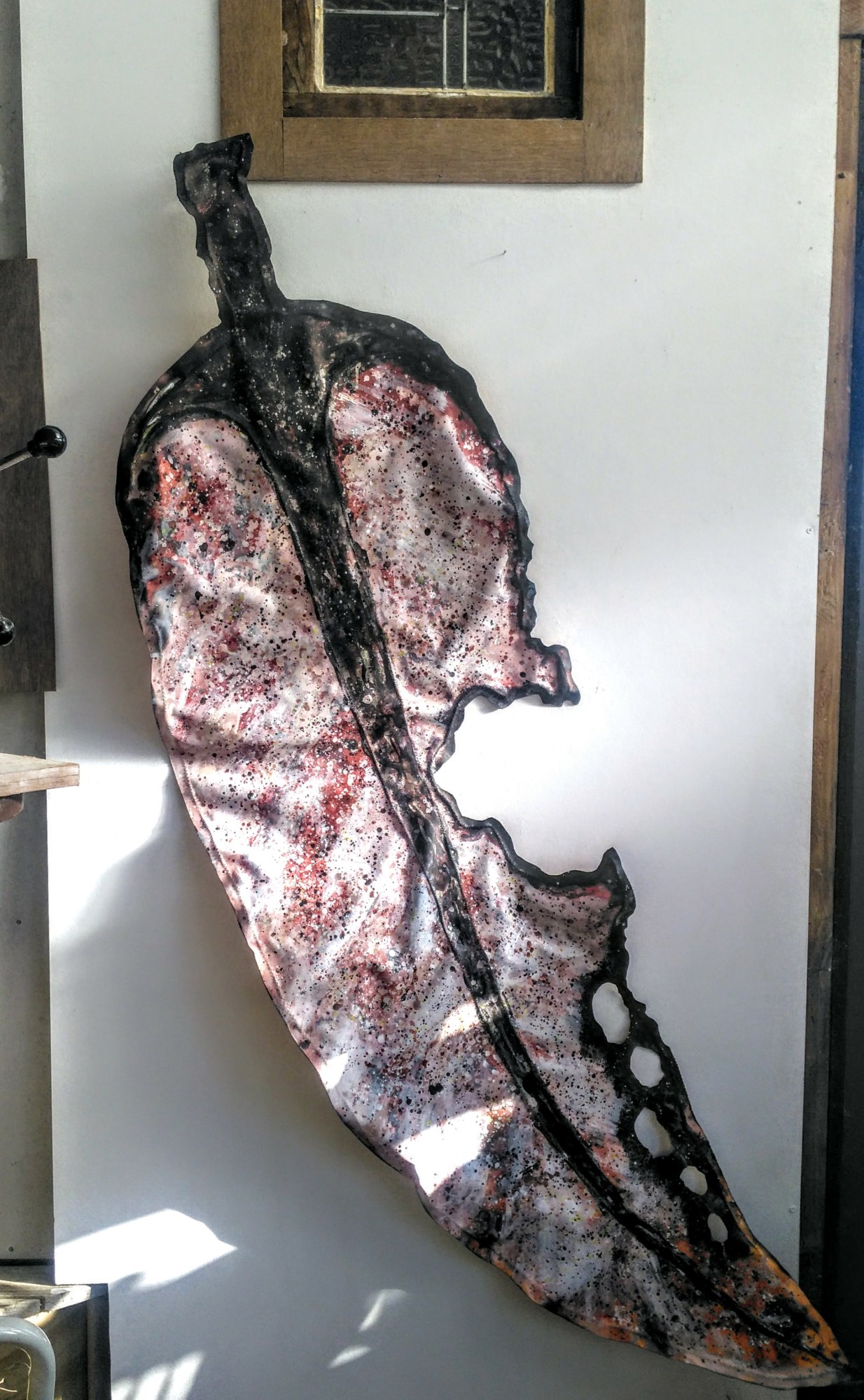 Form, surface and shadow are an integral part of my artworks. The leaves sit closely at the intersection between 2D and 3D. Hanging out from the wall gives movement and shadow, reminiscent of the dappled forest.