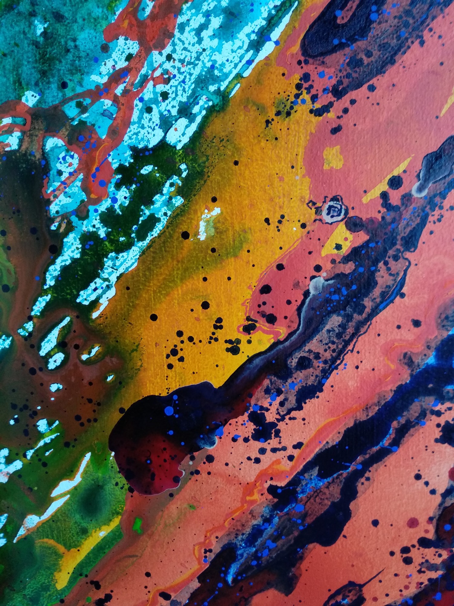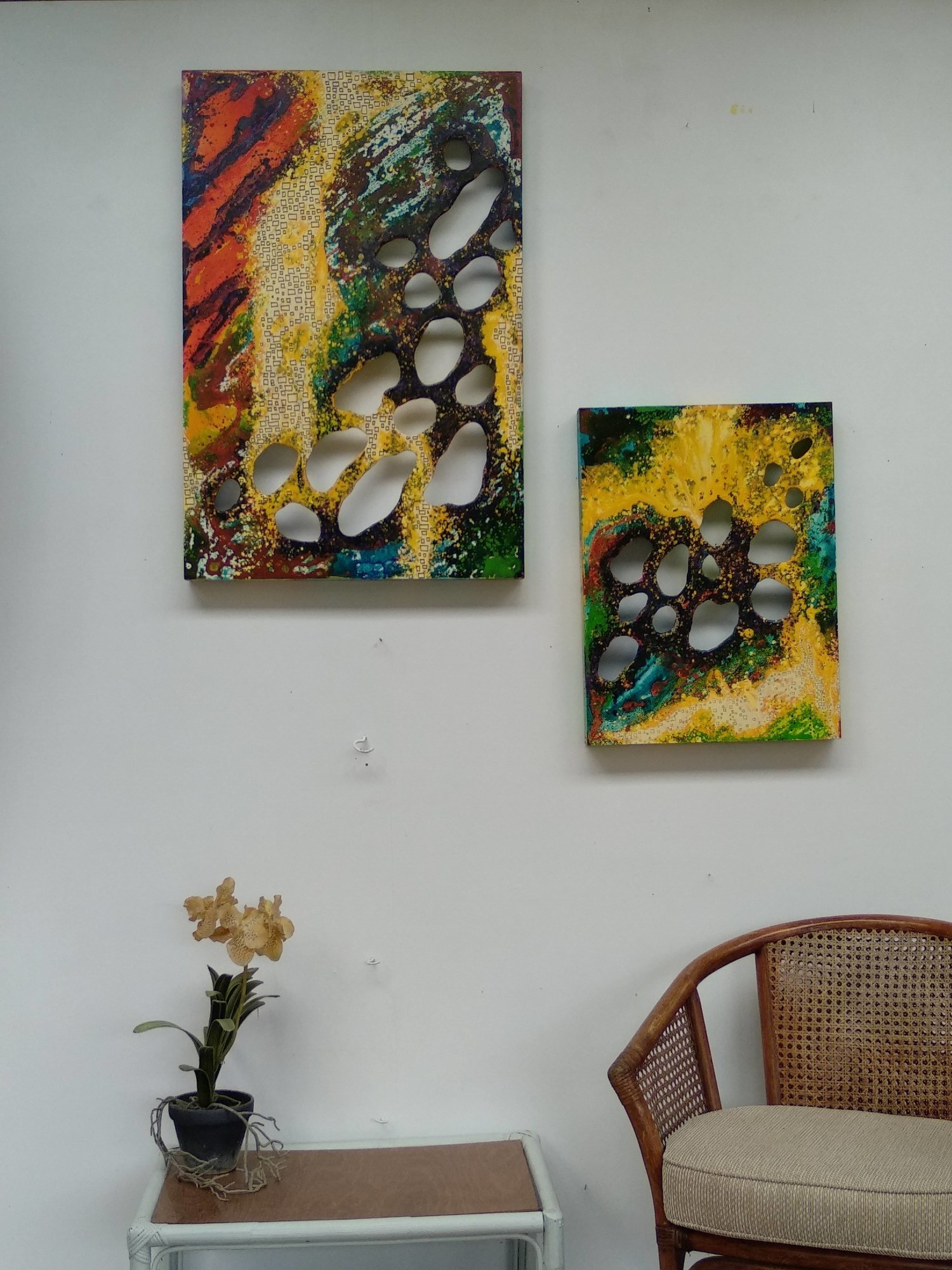 The colouring in these works is heavily influenced by my visit to the Hundertwasswer centre in Whangarei and through exploring his love for colour, design and nature.