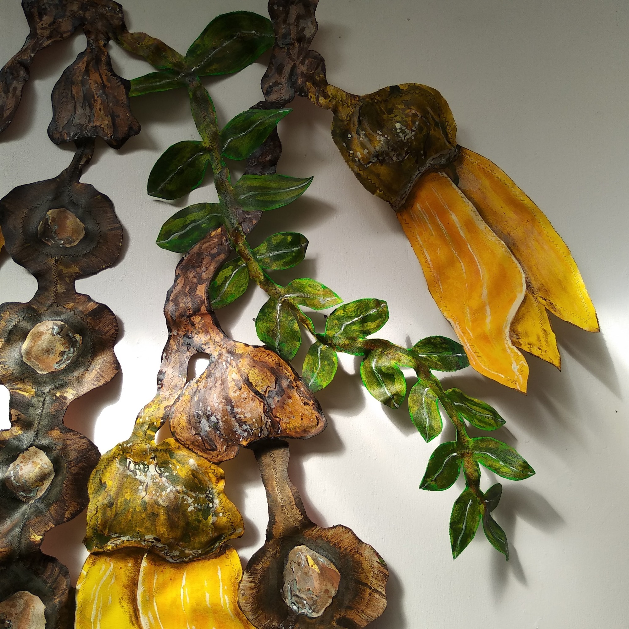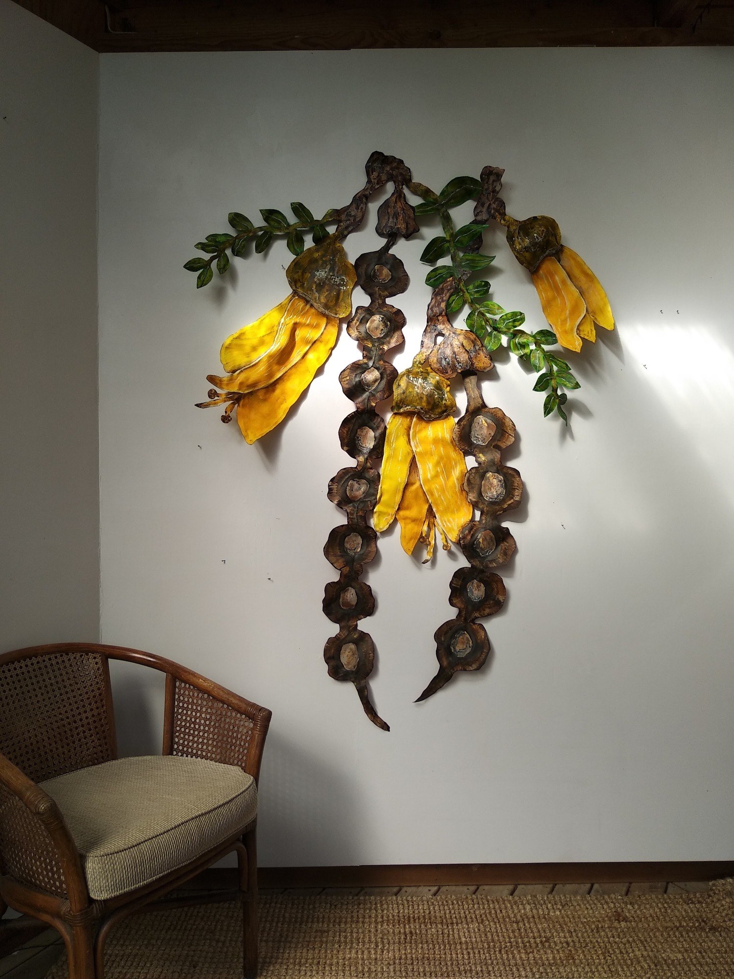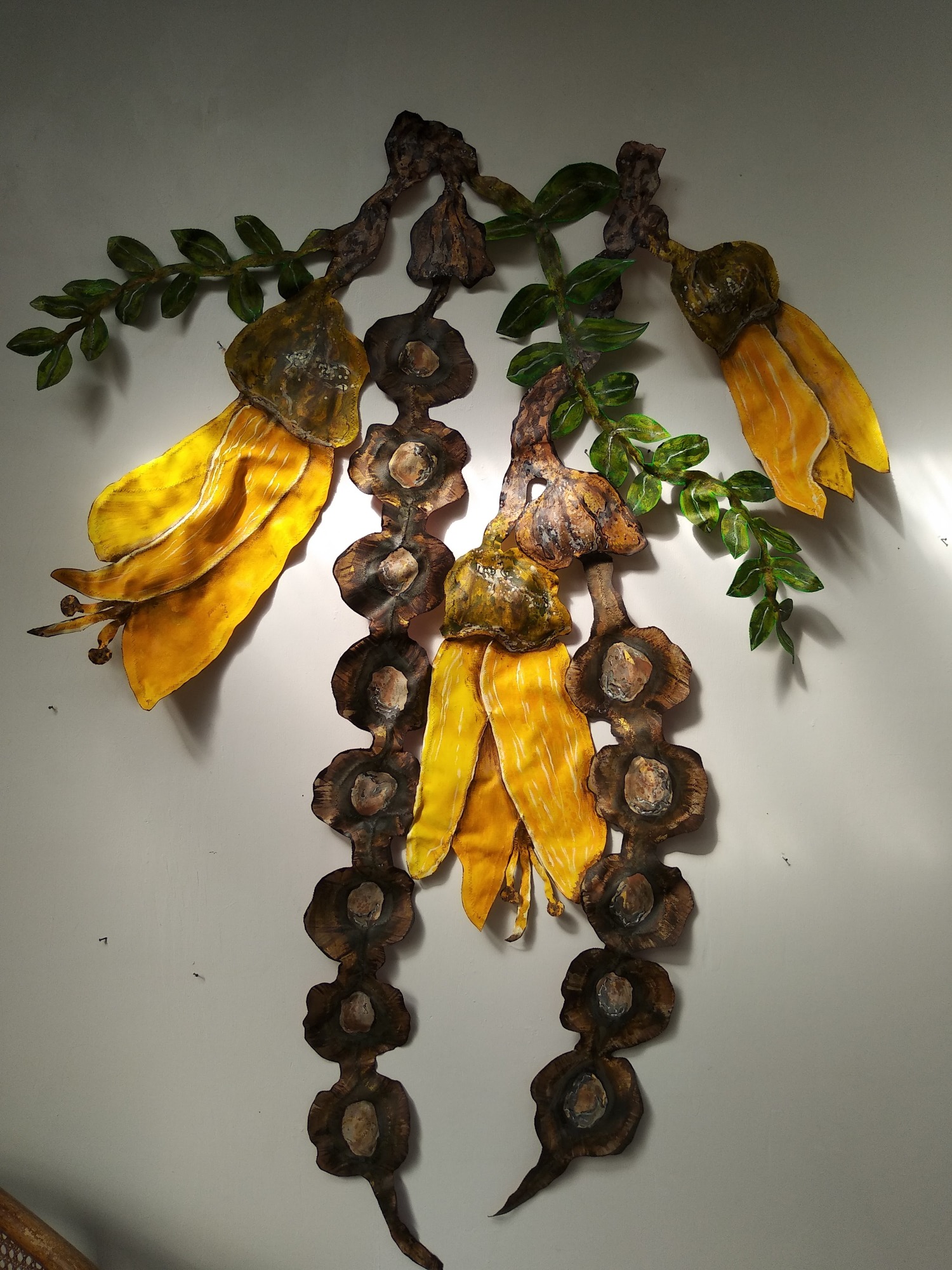 I have always loved the delicacy and colour of the Kowhai flowers, and the pods were some of the first that attracted me in my art practice, such fabulous shapes and tones. In this sculpture I have blended those colours and forms into one, I hope you enjoy it as much as I did making it.