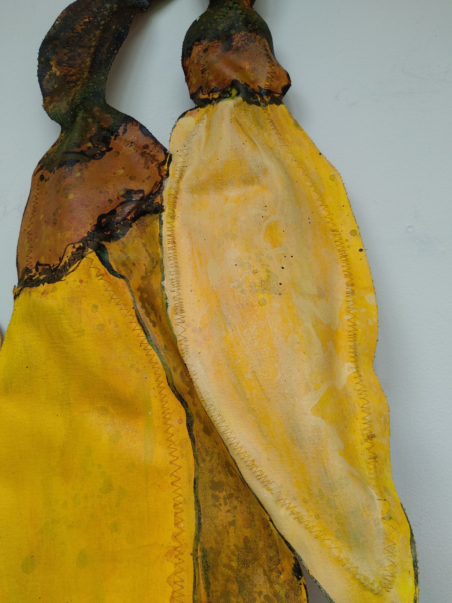 The new Canvas/Wire series comes from a desire to push the 2D boundary. These works sit closely at the intersection between 2D and 3D, being cut canvas it is flat .. then with wire and hanging points to hold it out from the wall, giving movement and shadow. Form, surface and shadow are an integral part of my artworks.