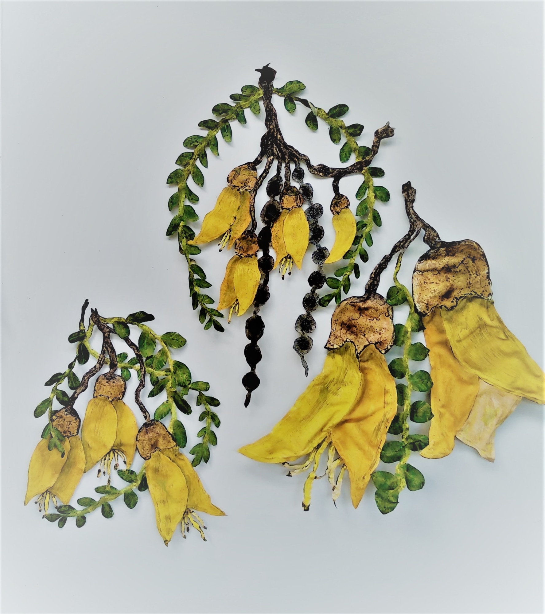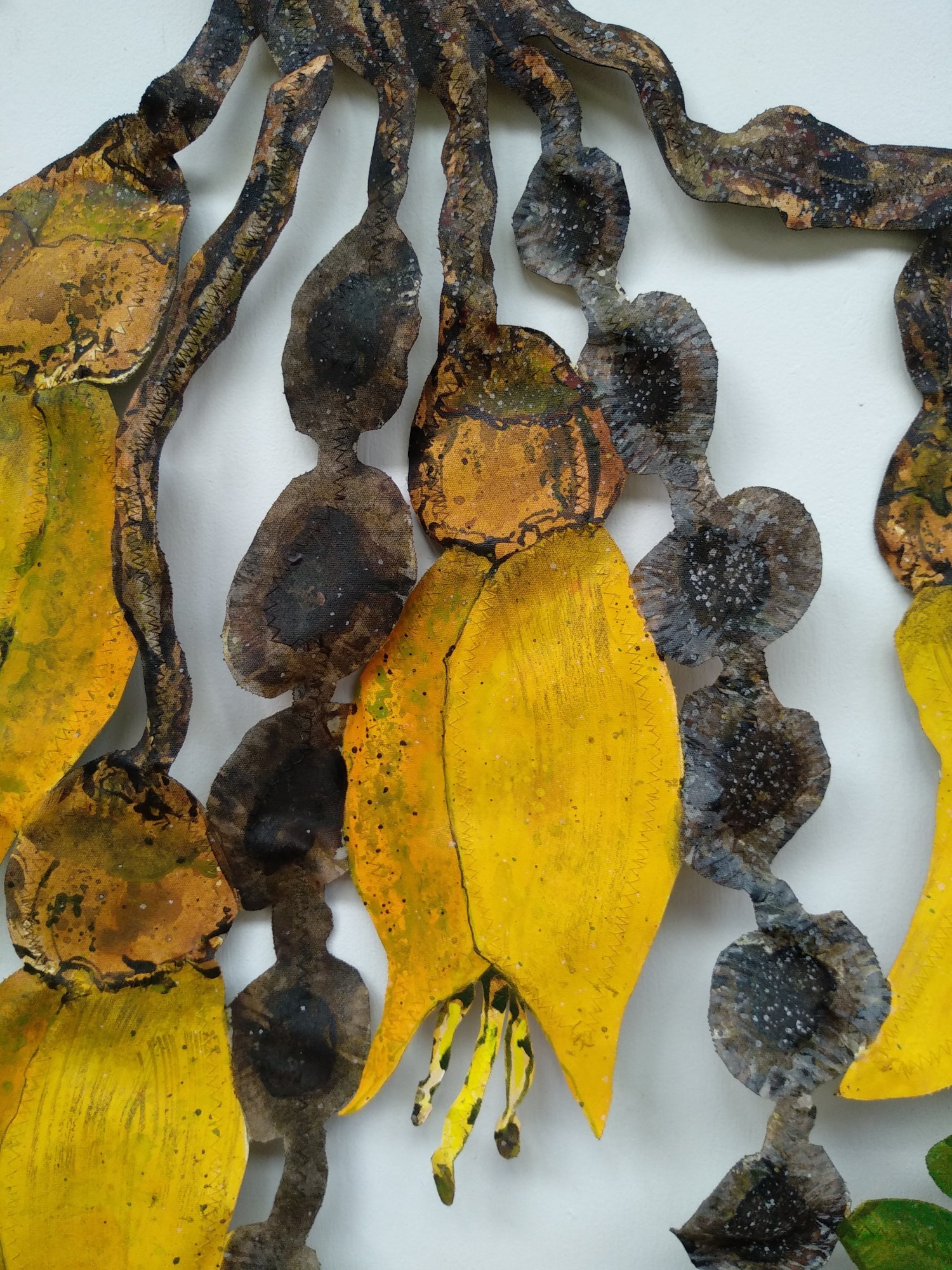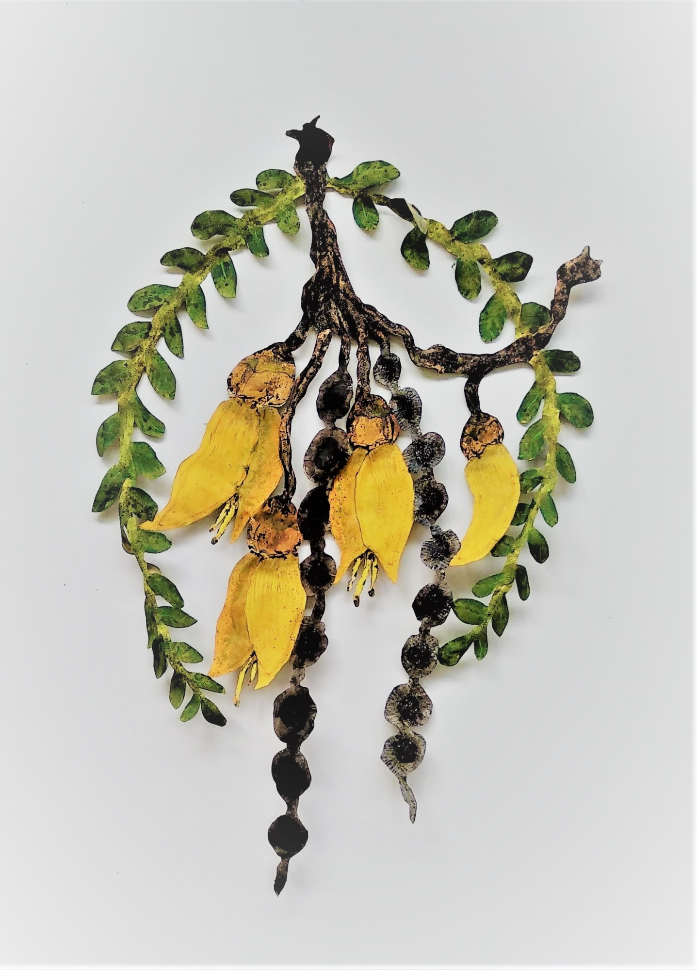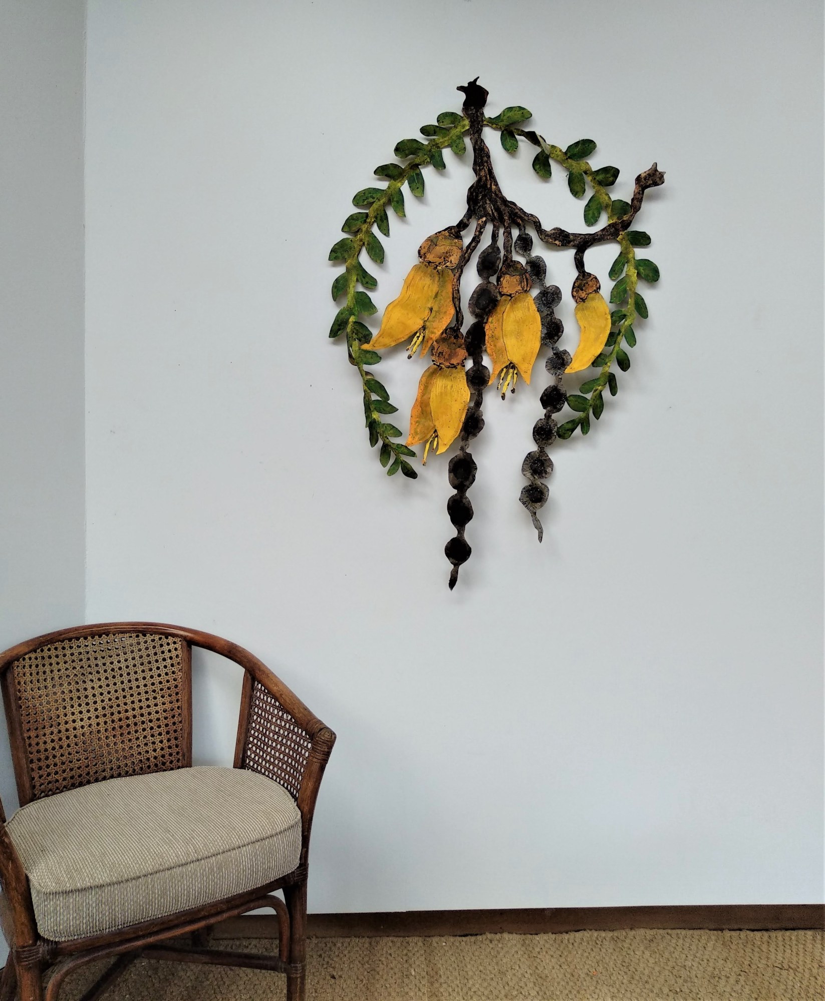 I have always loved the delicacy and colour of the Kowhai flowers, and the pods were some of the first that attracted me in my art practice, such fabulous shapes and tones. In this sculpture I have blended those colours and forms into one, I hope you enjoy it as much as I did making it.