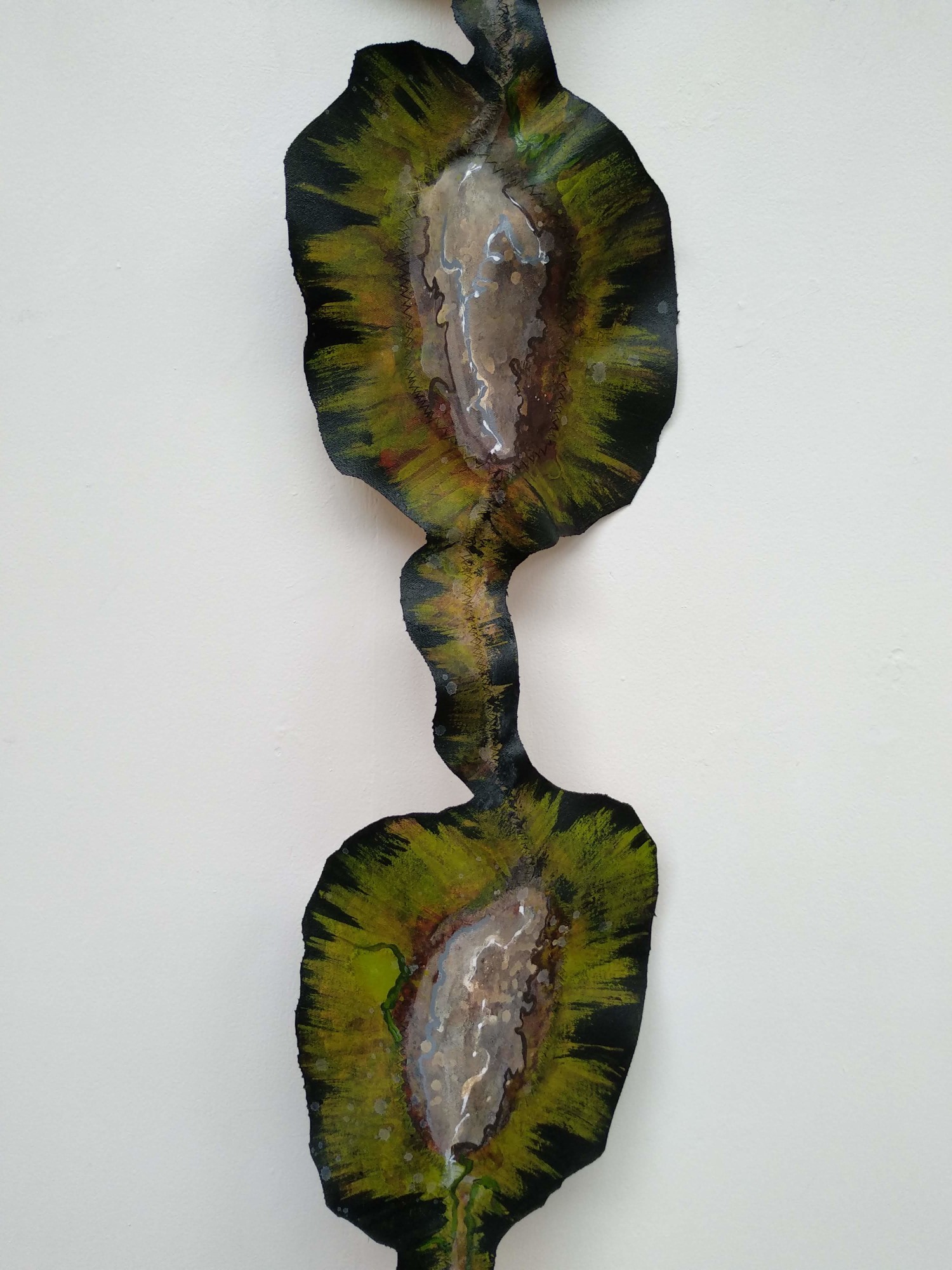 The new Canvas/Wire series comes from a desire to push the 2D boundary. These works sit closely at the intersection between 2D and 3D, being cut canvas it is flat .. then with wire and hanging points to hold it out from the wall, giving movement and shadow. Form, surface and shadow are an integral part of my artworks.