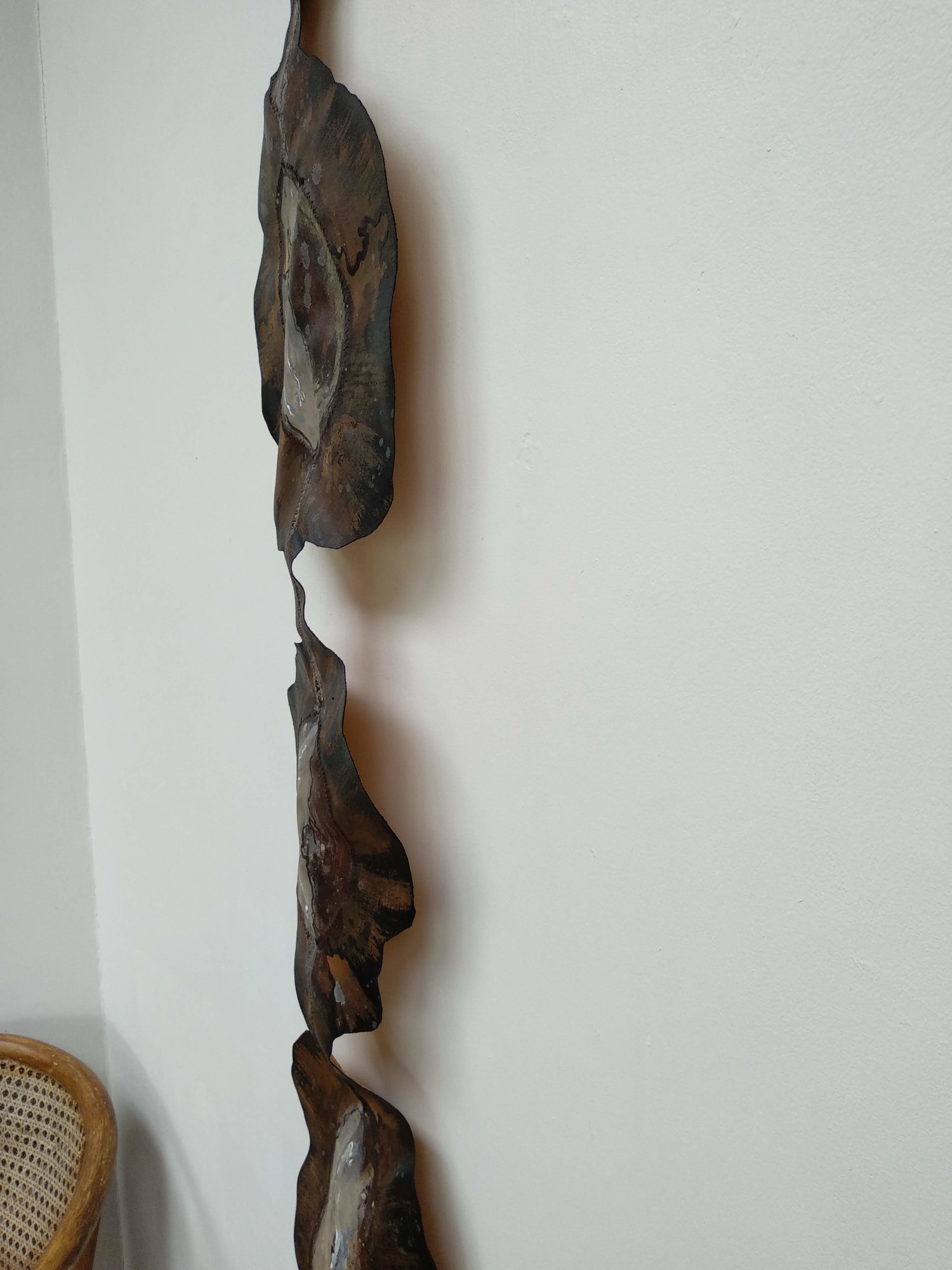 The new Canvas/Wire series comes from a desire to push the 2D boundary. These works sit closely at the intersection between 2D and 3D, being cut canvas it is flat .. then with wire and hanging points to hold it out from the wall, giving movement and shadow. Form, surface and shadow are an integral part of my artworks.