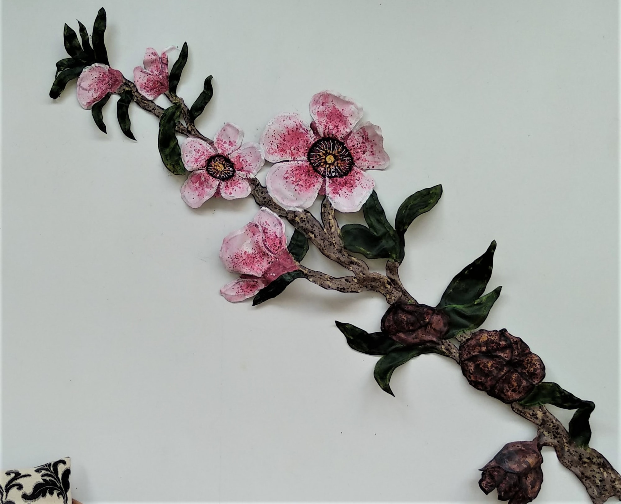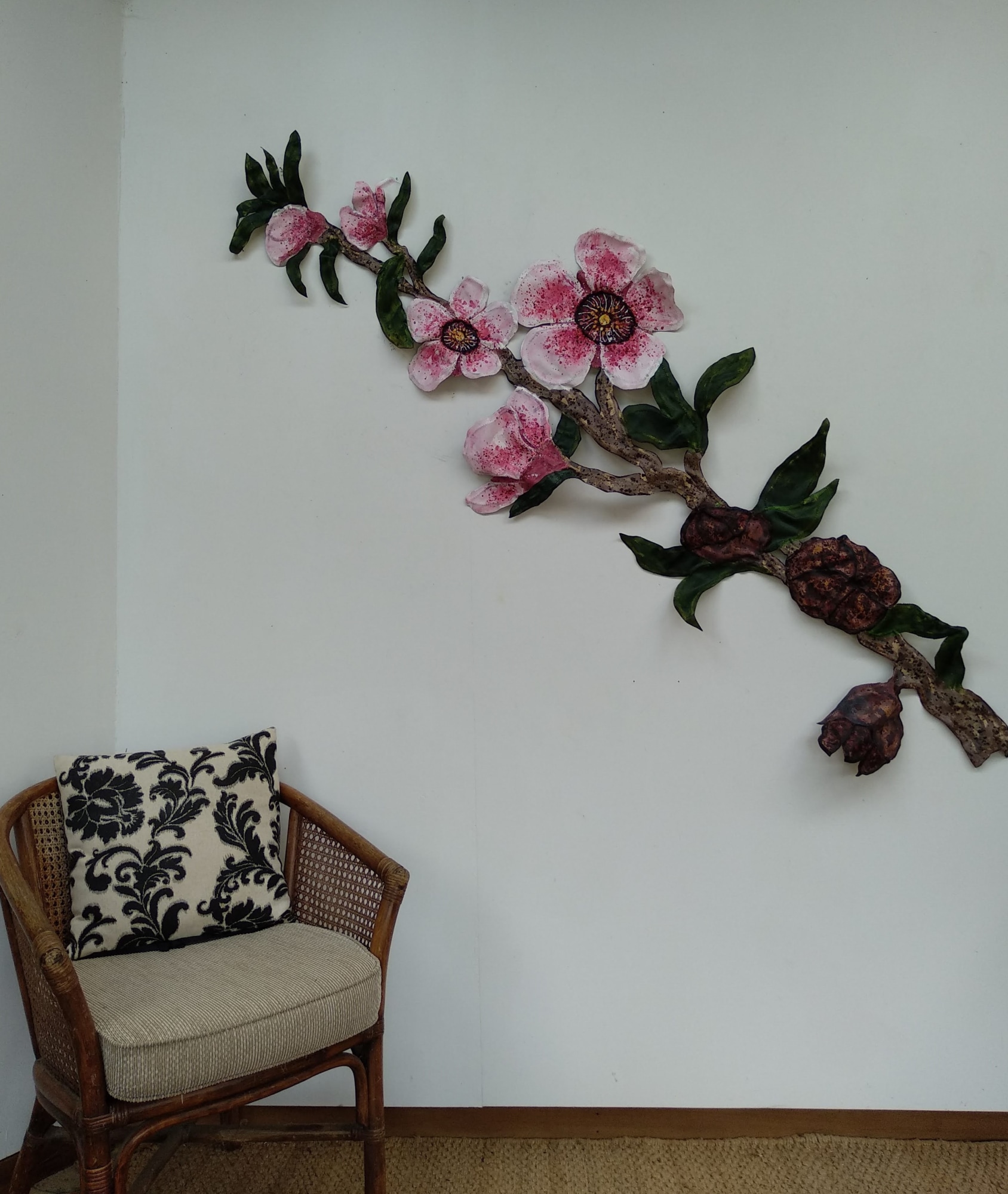 With this Manuka Branch, I enjoy having both the flowers and seed pods on the same sculpture, this gives more texture and variation to hold the eye. This particular piece suits either a horizontal or a vertical hang.
