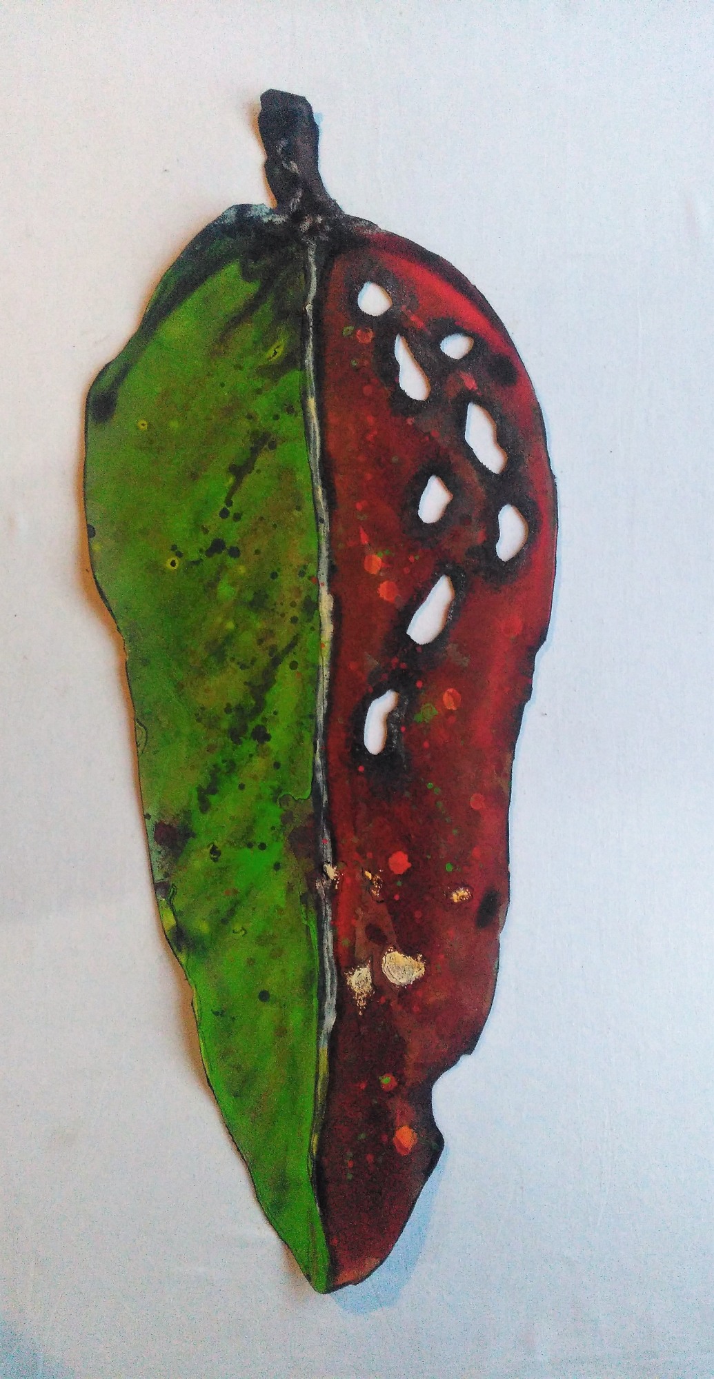 Form, surface and shadow are an integral part of my artworks. The leaves sit closely at the intersection between 2D and 3D, being cut canvas they are flat .. then they are hung on gallery pins, which holds them out from the wall, giving movement and shadow, reminiscent of the dappled forest.