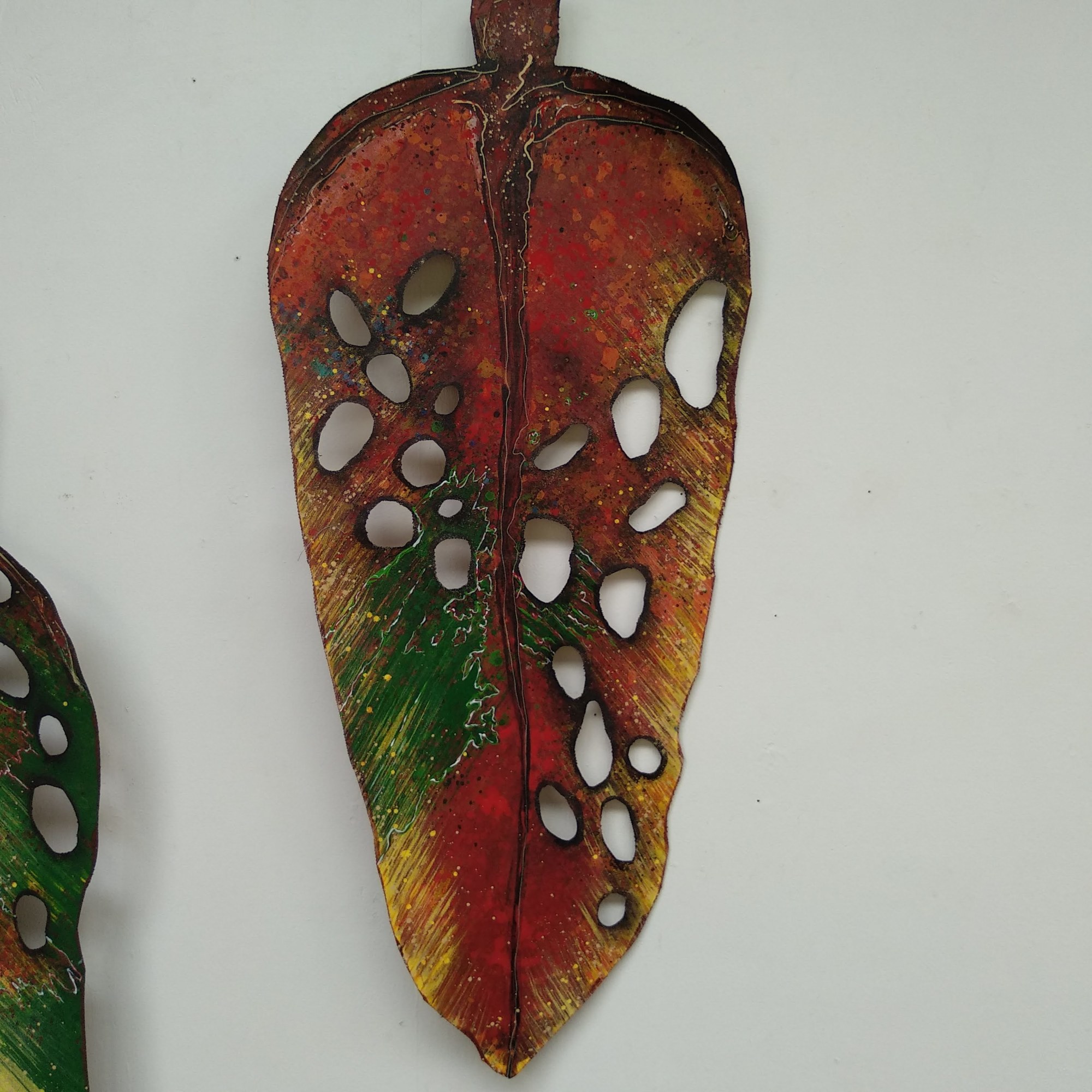 Form, surface and shadow are an integral part of my artworks. The leaves sit closely at the intersection between 2D and 3D, being cut canvas they are flat .. then they are hung on gallery pins, which holds them out from the wall, giving movement and shadow, reminiscent of the dappled forest.