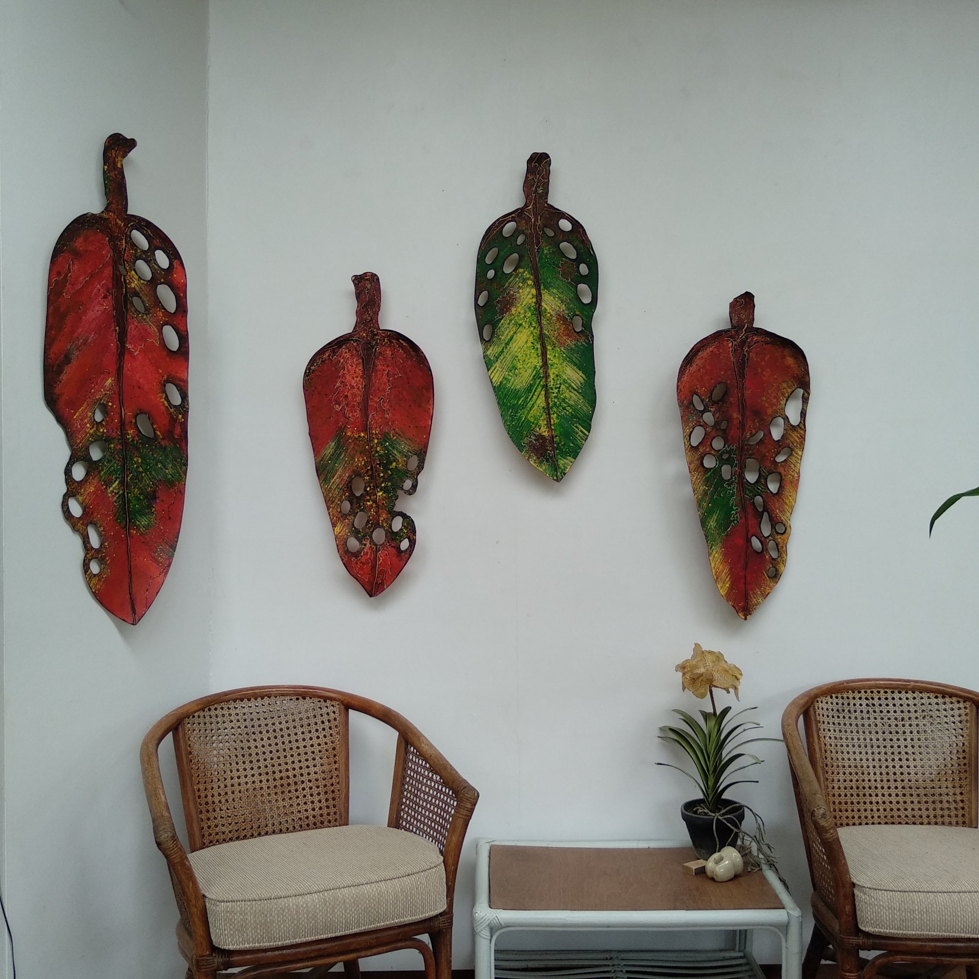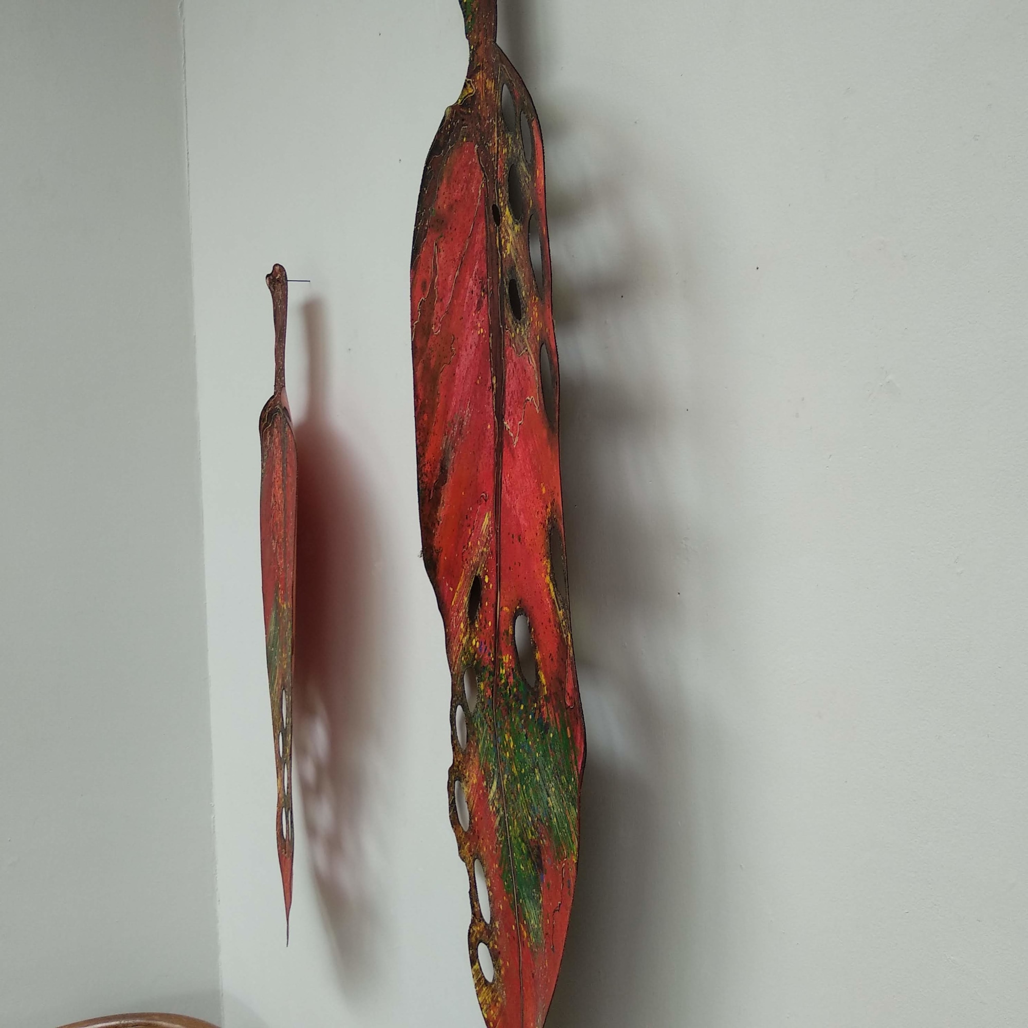 Form, surface and shadow are an integral part of my artworks. The leaves sit closely at the intersection between 2D and 3D, being cut canvas they are flat .. then they are hung on gallery pins, which holds them out from the wall, giving movement and shadow, reminiscent of the dappled forest.