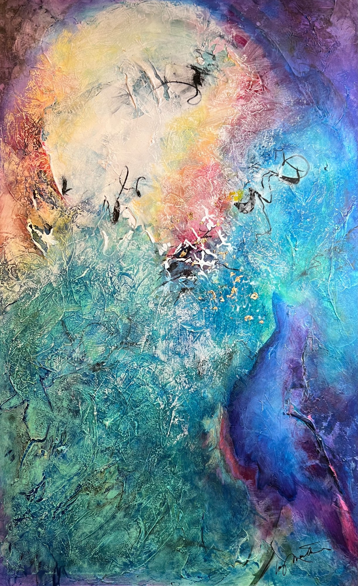 Raven and the Moon by Liz Morton  Image: Pastel & Gold Leaf - signed