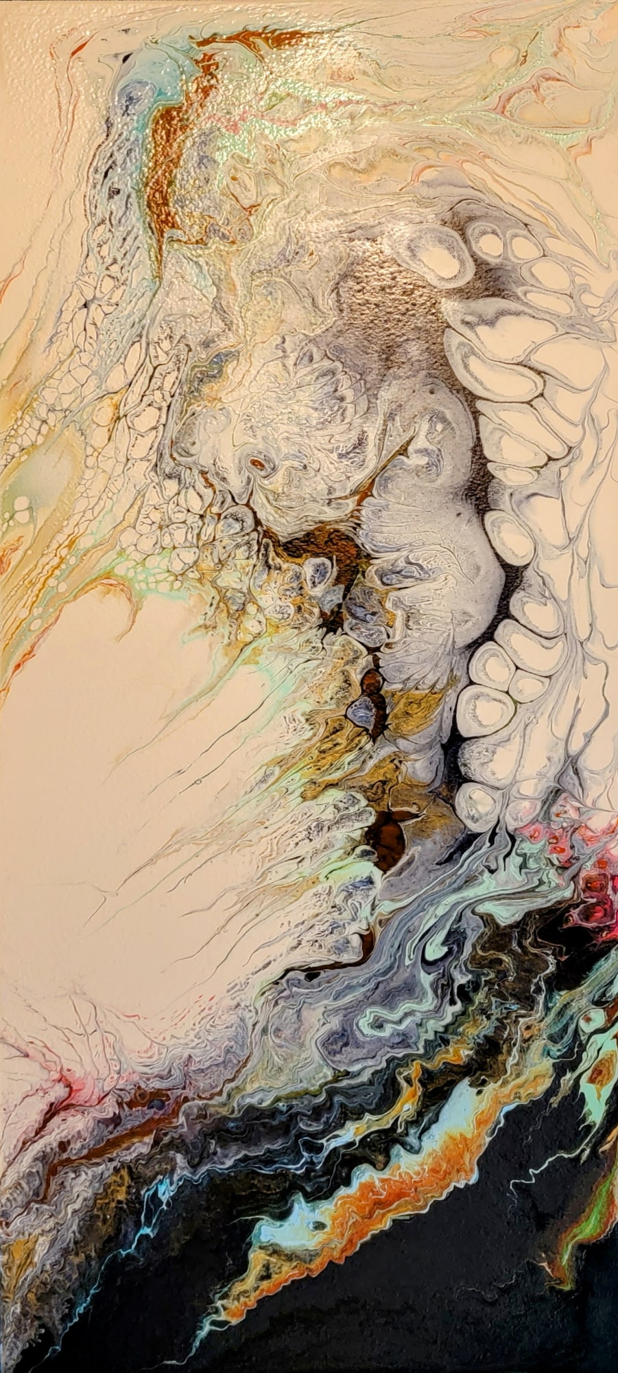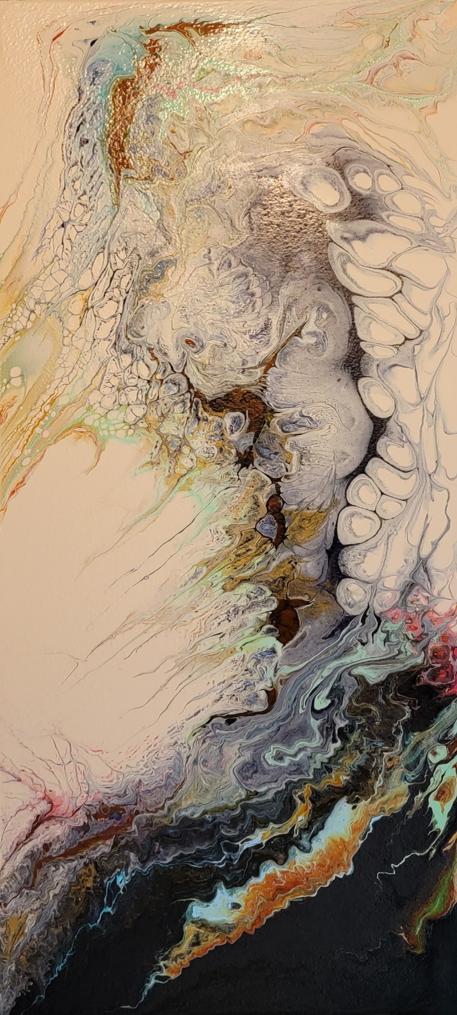 Acrylic, enamel and alcohol ink on an upcycled slab