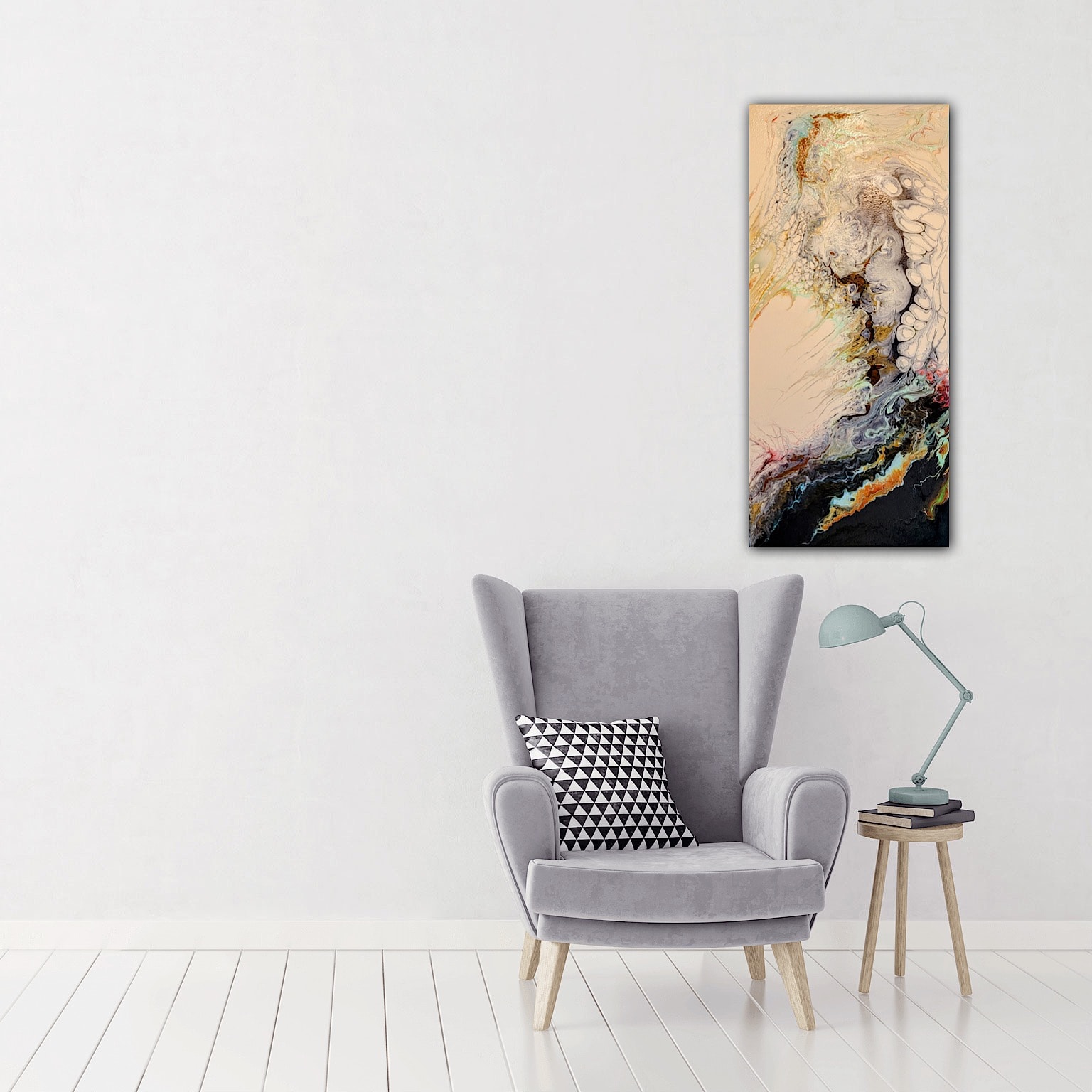 Acrylic, enamel and alcohol ink on an upcycled slab