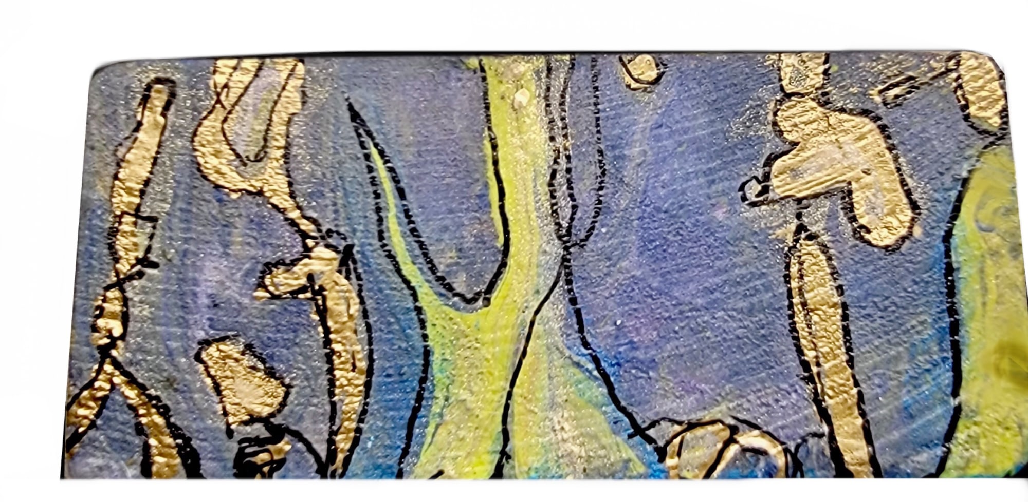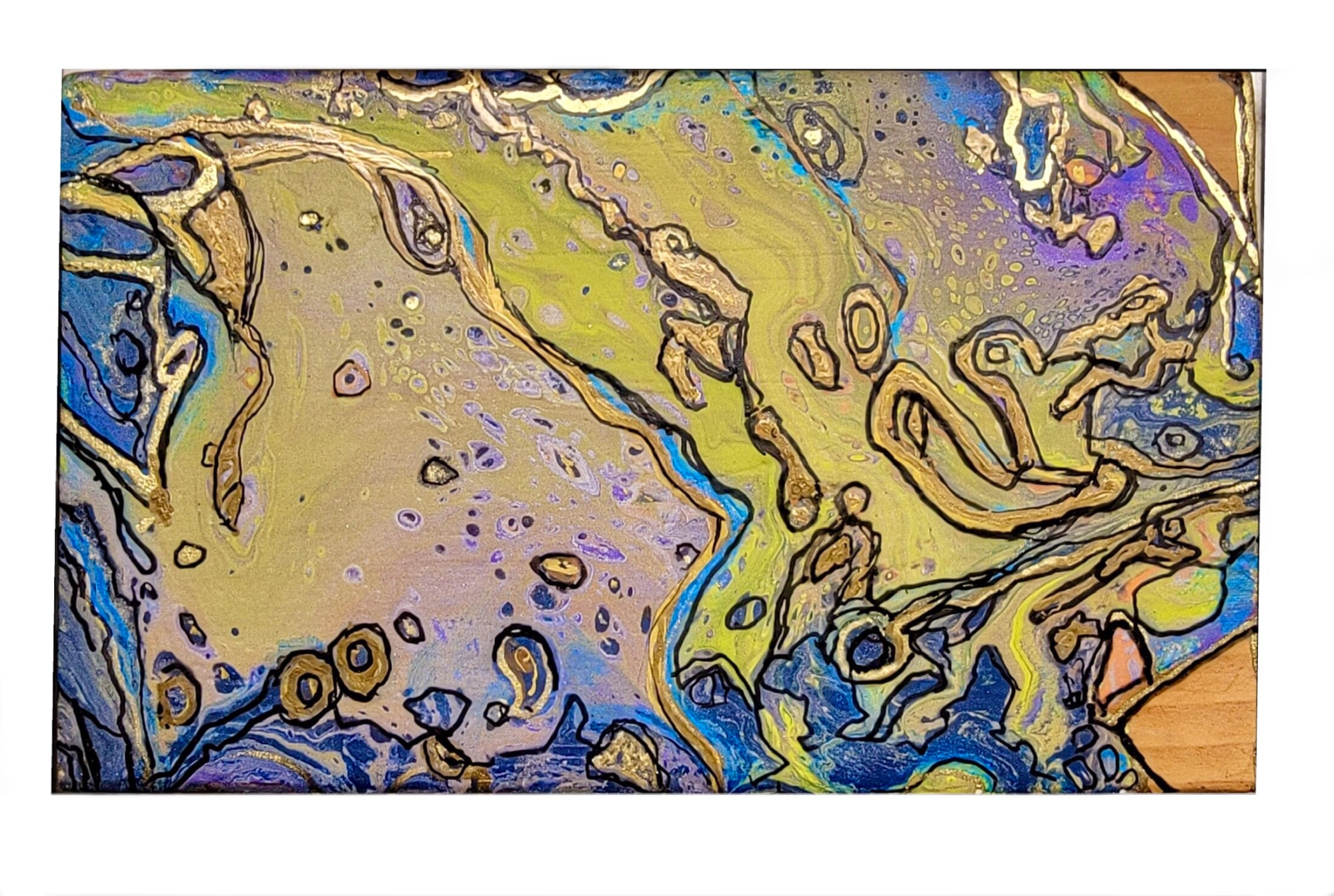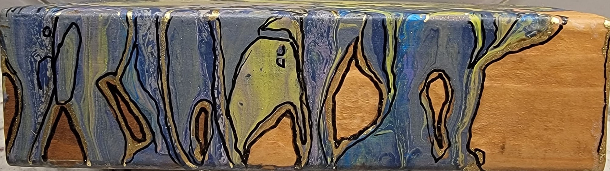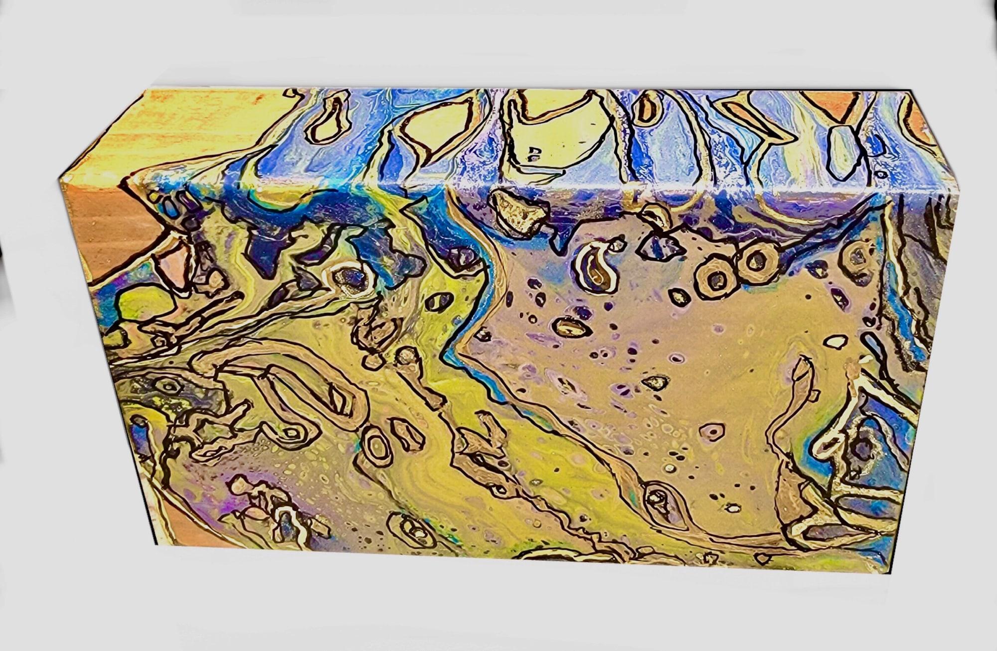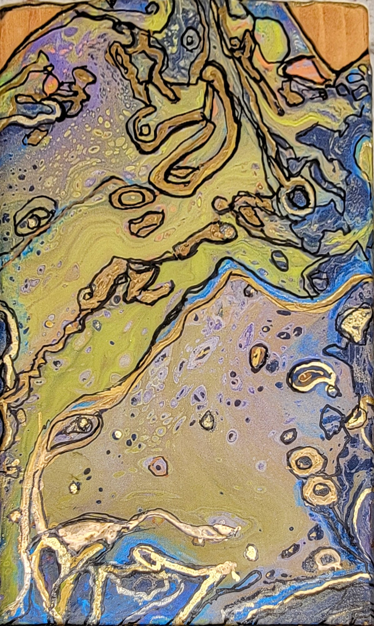 -Acrylic and Alcohol Inks on a piece of 2x4 stud