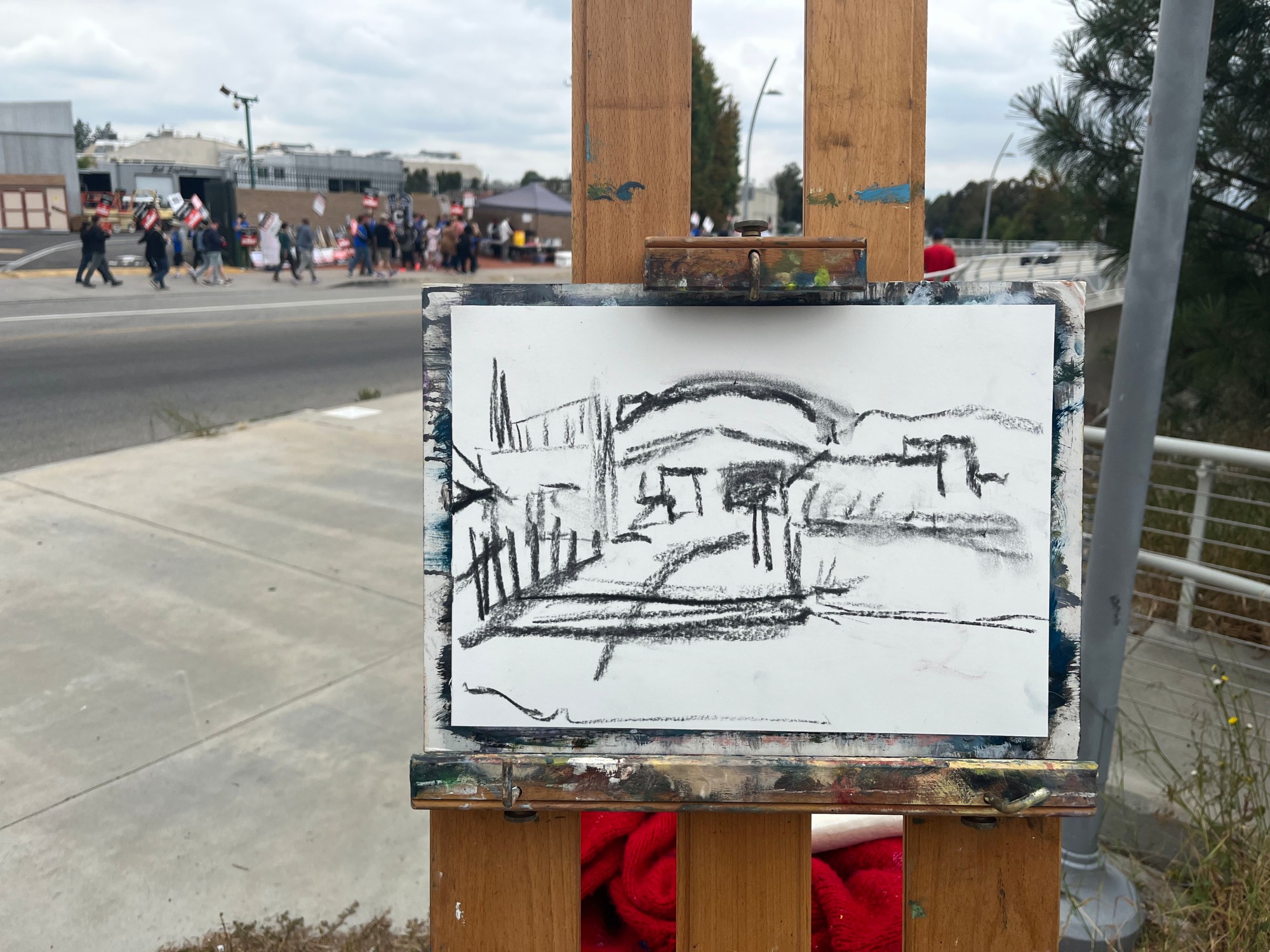 - Subject Matter: Plein Air Painting of the picket line during the Writers Strike 2023