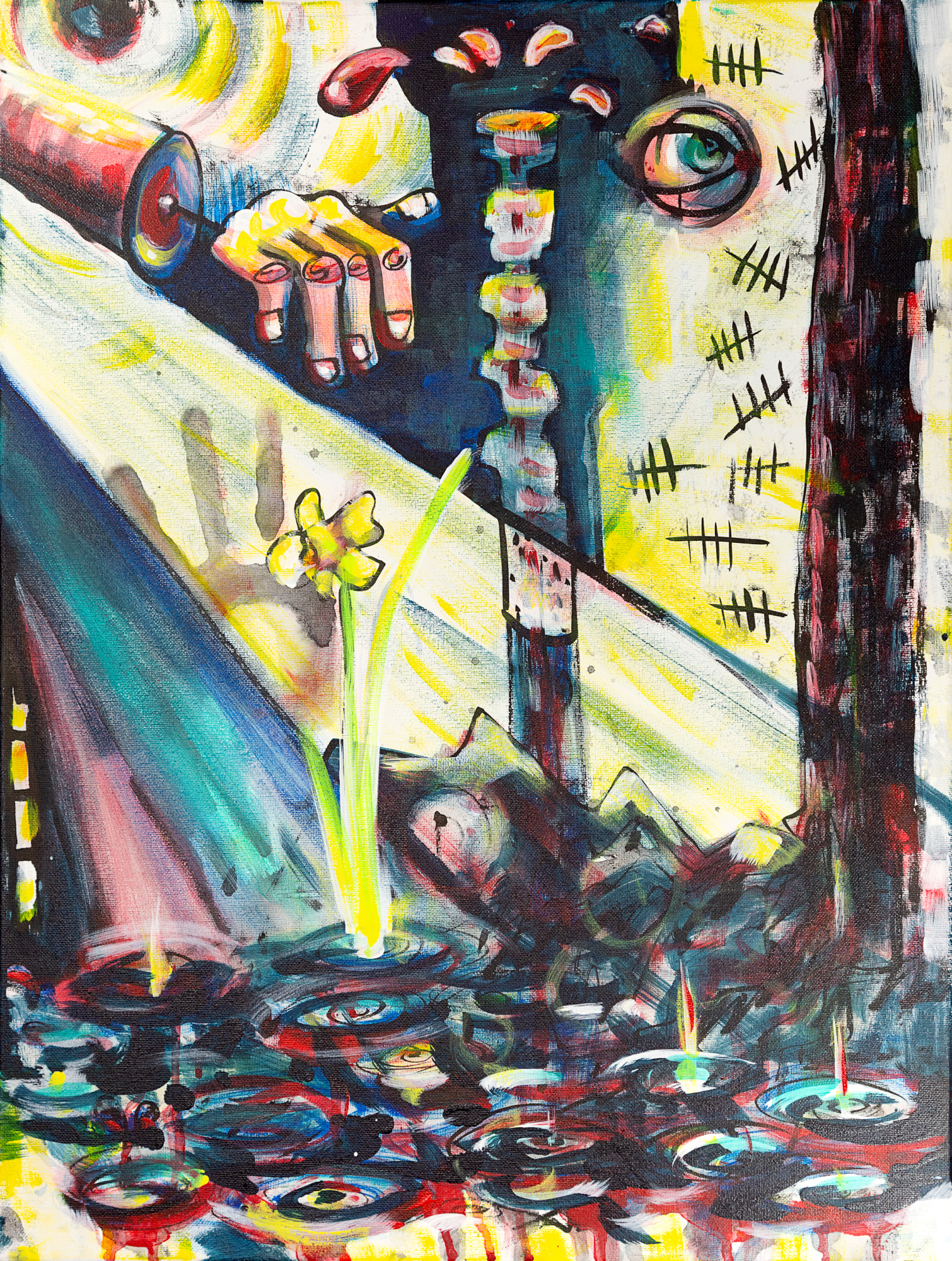 Passages by Lois Keller is a series of drawn and painted works on canvas with ink and acrylic glazes. They ponder the path forged through different life experiences. The monosyllabic titles of the series- Place, Fate, Flip, Seed, Time, Here- are representative of the belief that every being finds their path through circumstance. The series seeks to capture the varied actions, reactions, and interactions from those circumstances.