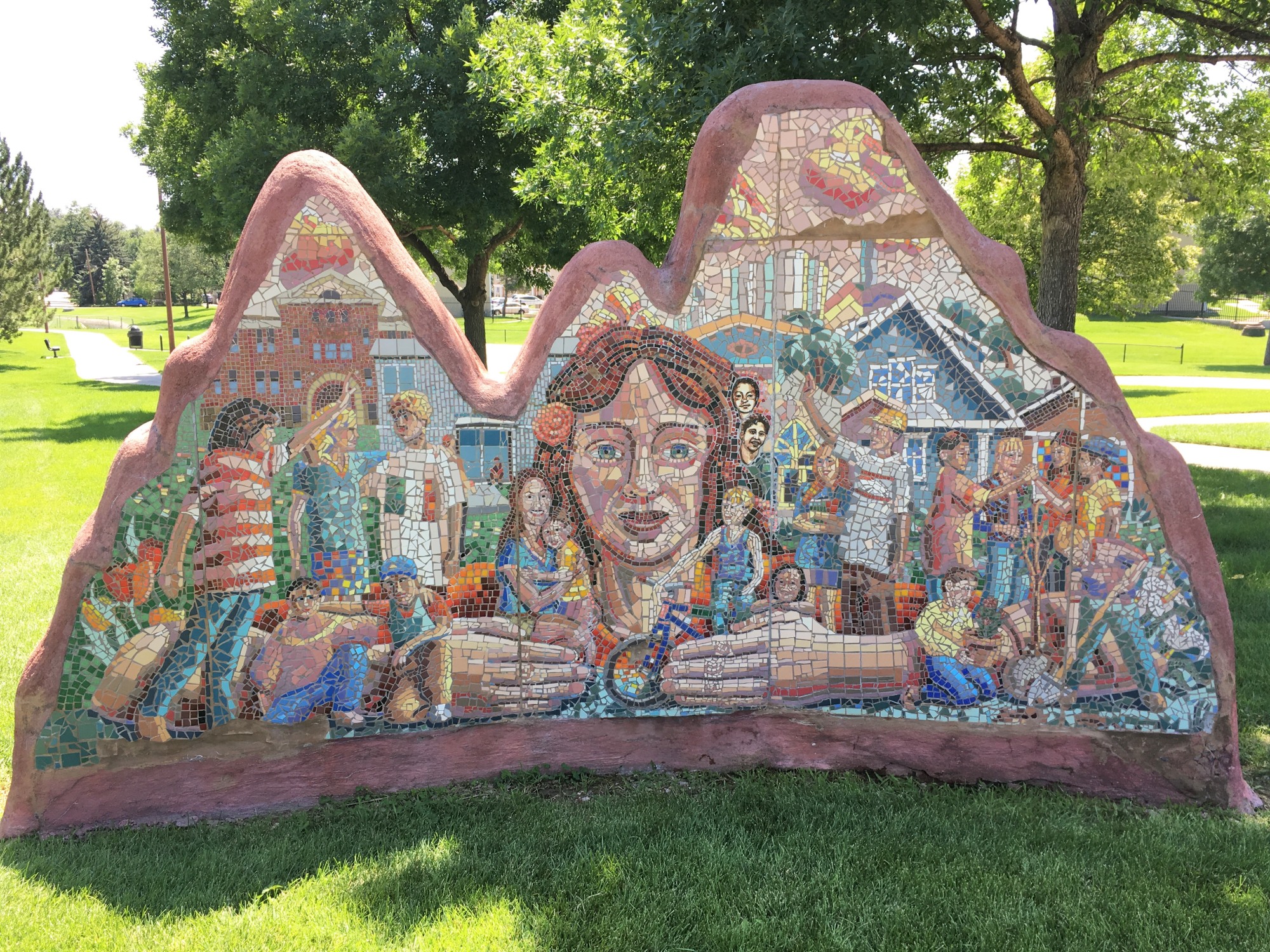 Artists Mario Miguel Echevarria and Susan Dailey created neighborhood-based artwork using the faces, hands, and ideas of the Kensington Park neighbors to make a statement in concrete. It is situated in the center of the park near East Longs Peak Avenue.