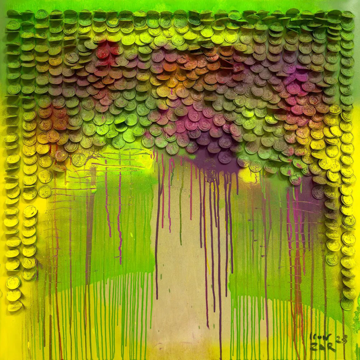 This piece explores the raw intersection between creativity and consumption. Smashed coffee capsules—collected from urban cafés and studio spaces—are arranged poetically across the canvas, embodying the chaotic yet inspired rhythm of the modern writer's life.