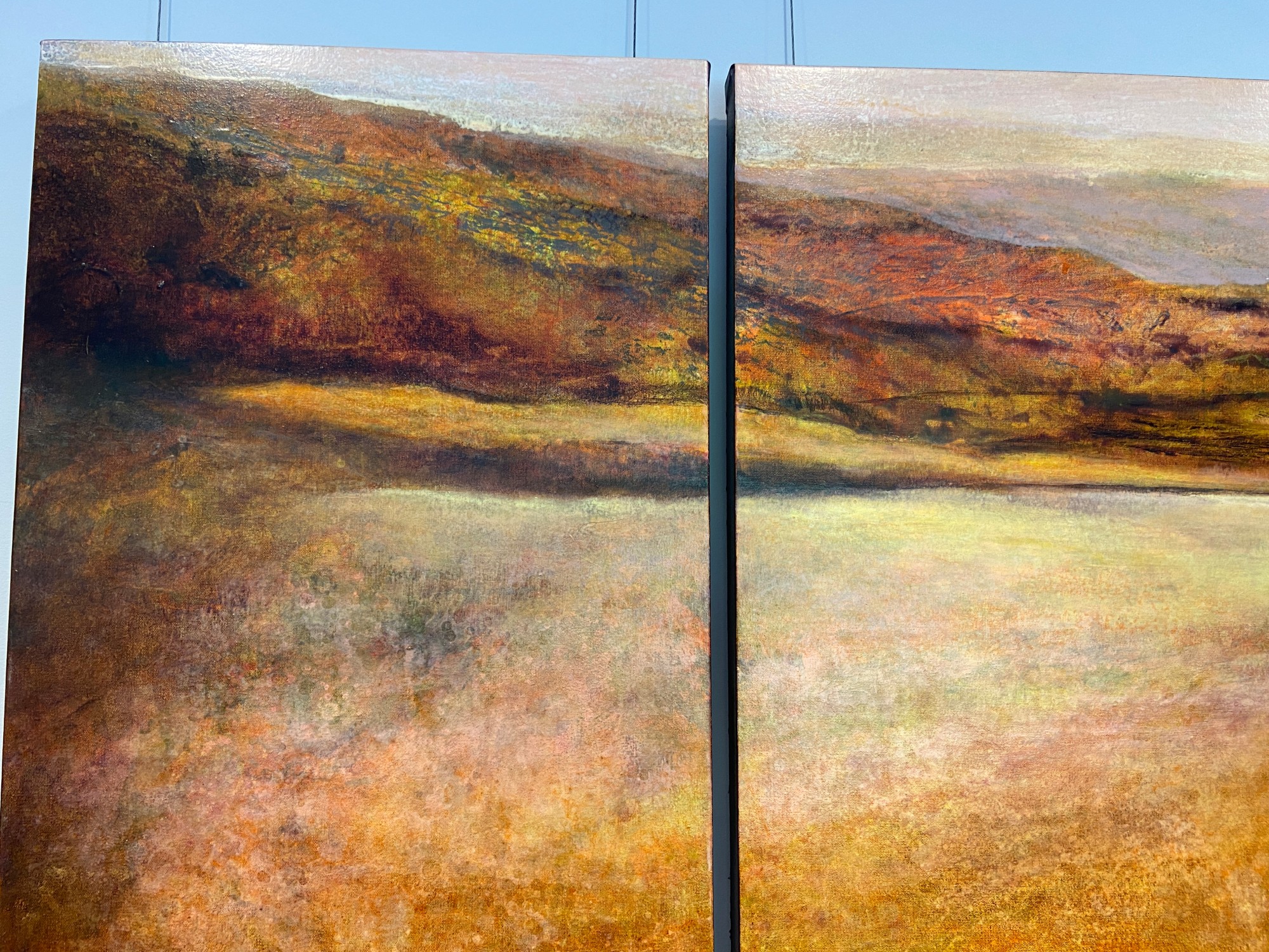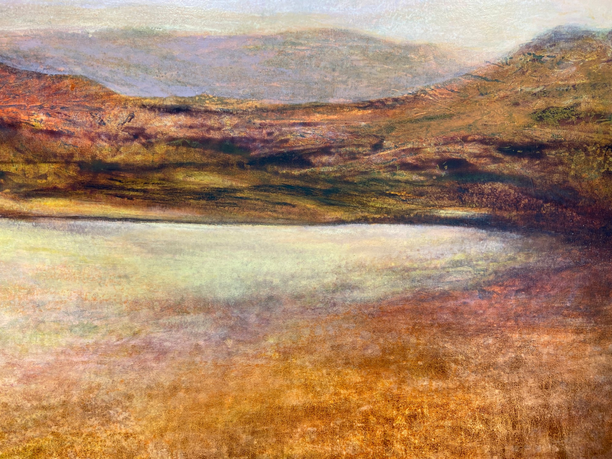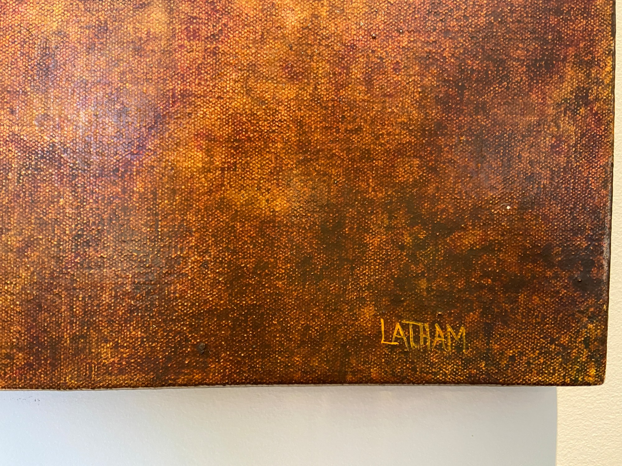 PROCESS: Latham enjoys experimenting with a variety tools and viscosity of paint to discover the textures and shapes that reveal the landscape over time. An integral feature of her painting is the use of rich translucent colors to create depth and visual texture.