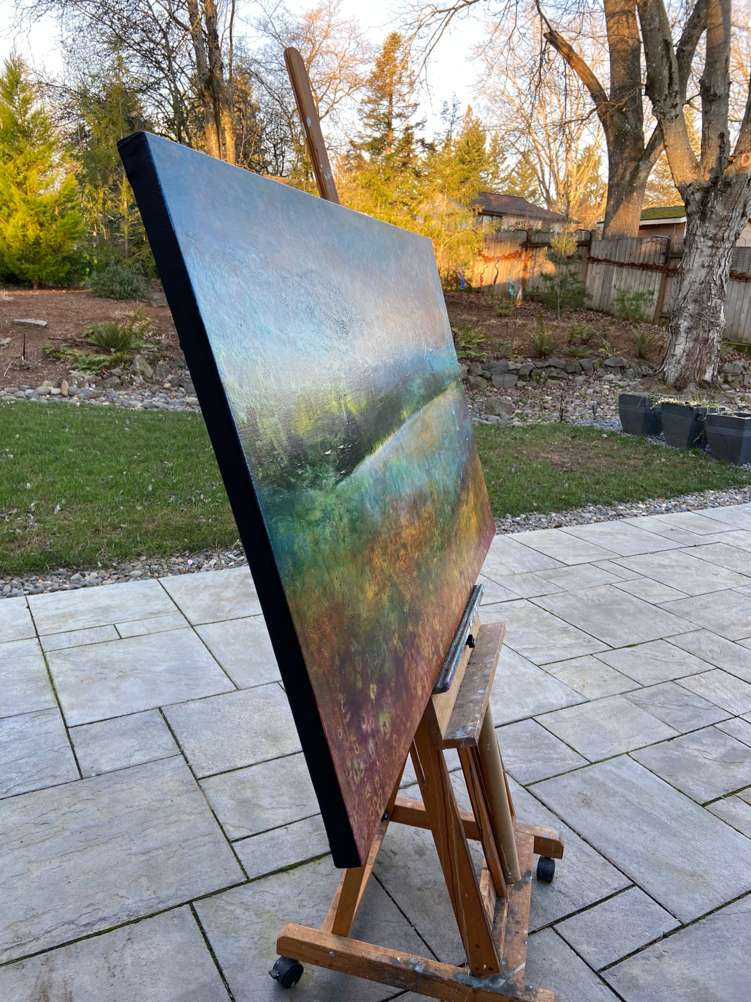 FEATURES: Acrylic on stretched canvas; Several coats of a satin acrylic sealer to protect the painting; Wrapped museum style edges painted in a deep matte color; Professional wire ready to hang; Signed on the front; Signed and dated on the back.