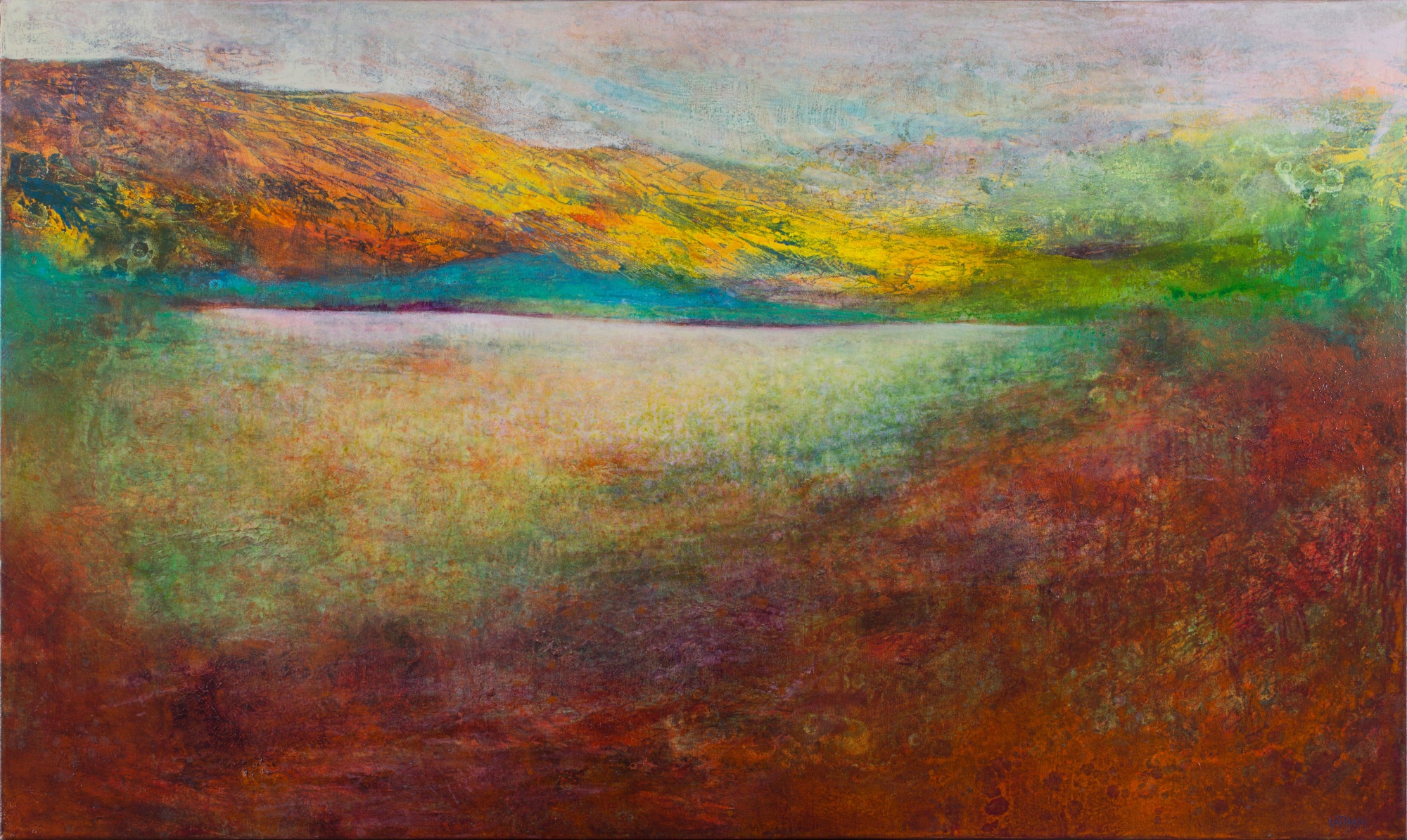 PROCESS: Latham enjoys experimenting with a variety tools and viscosity of paint to discover the textures and shapes that reveal the landscape over time. An integral feature of her painting is the use of rich translucent colors to create depth and visual texture.