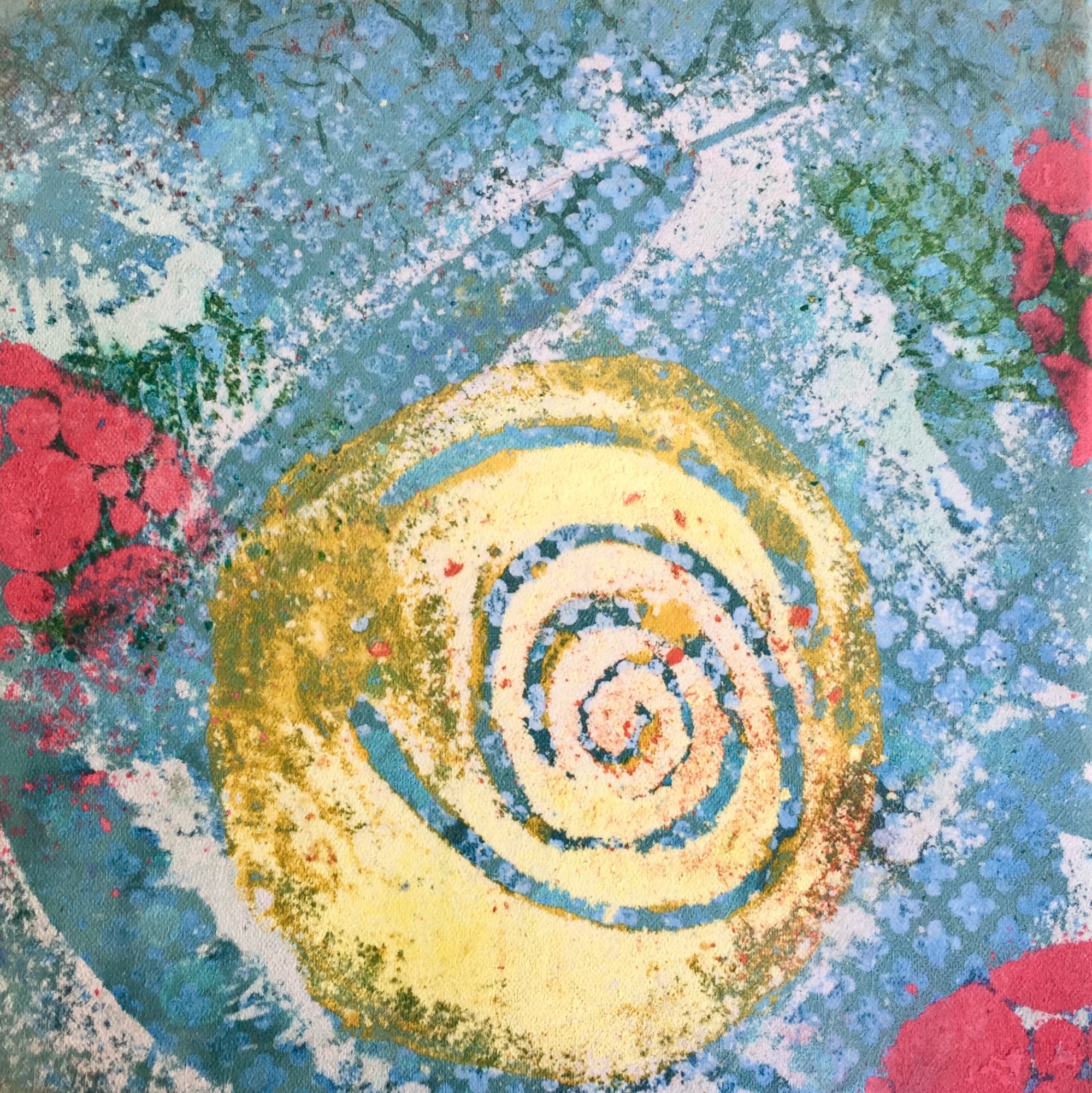 clay monoprint mounted on panel