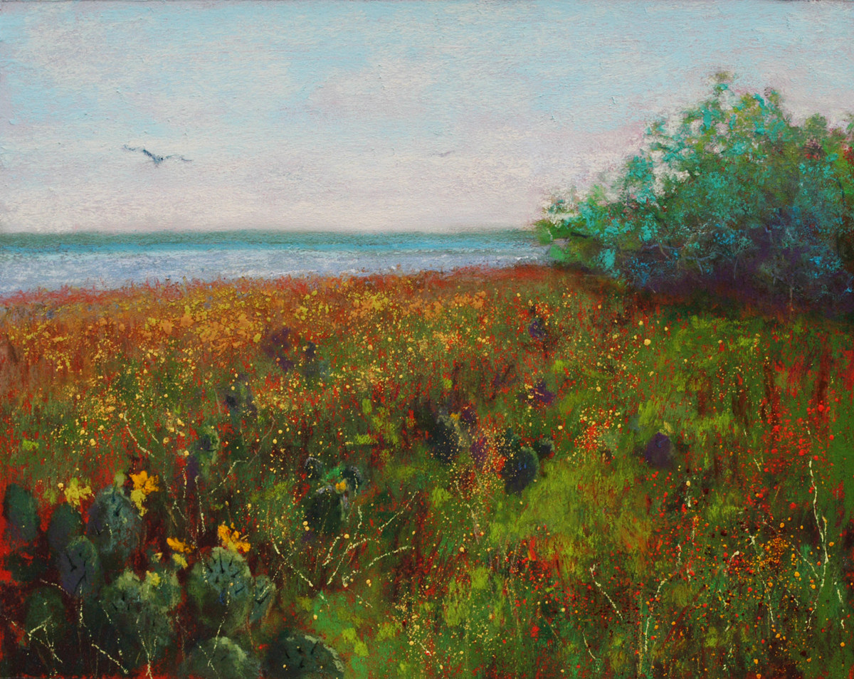 I had to watch where I was walking on my daily excursions because there was a lot of Prickly Pear Cactus to step around, some well hidden by the other plants. I love the variety of blues and greens displayed by the flattened stems. The spines are actually the "leaves". They protect the cactus from plant-eating animals and direct water to the roots. The flowers, borne on the edges of the stems are really pretty.