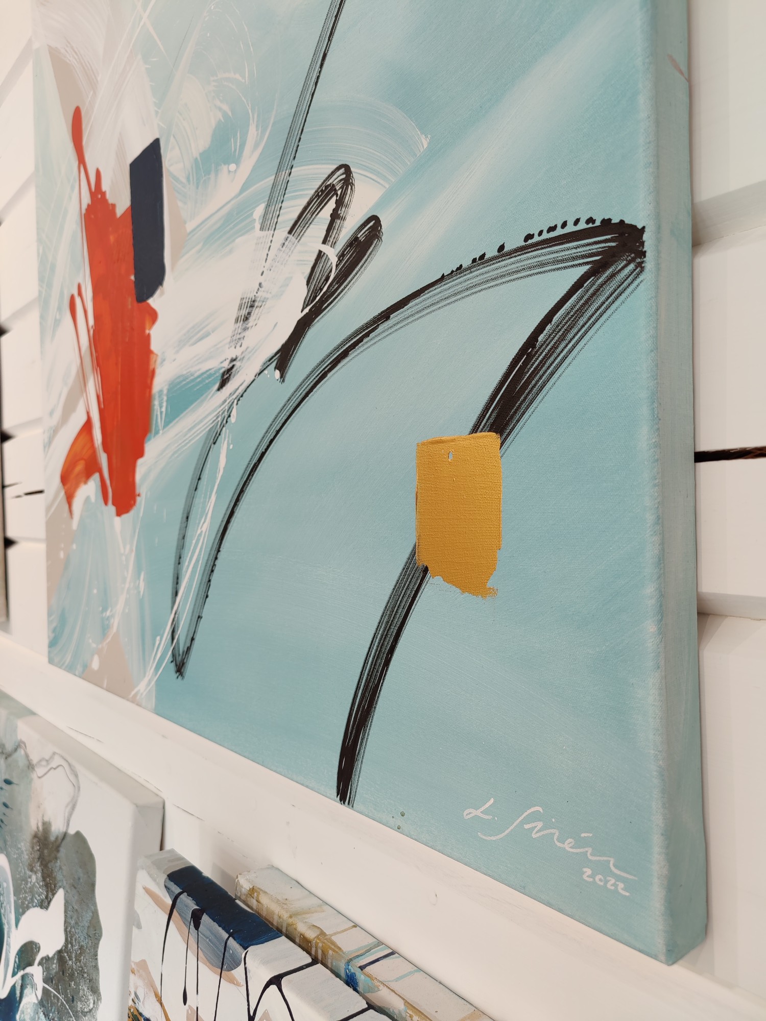 Abstract painting with free movement and fresh colors.