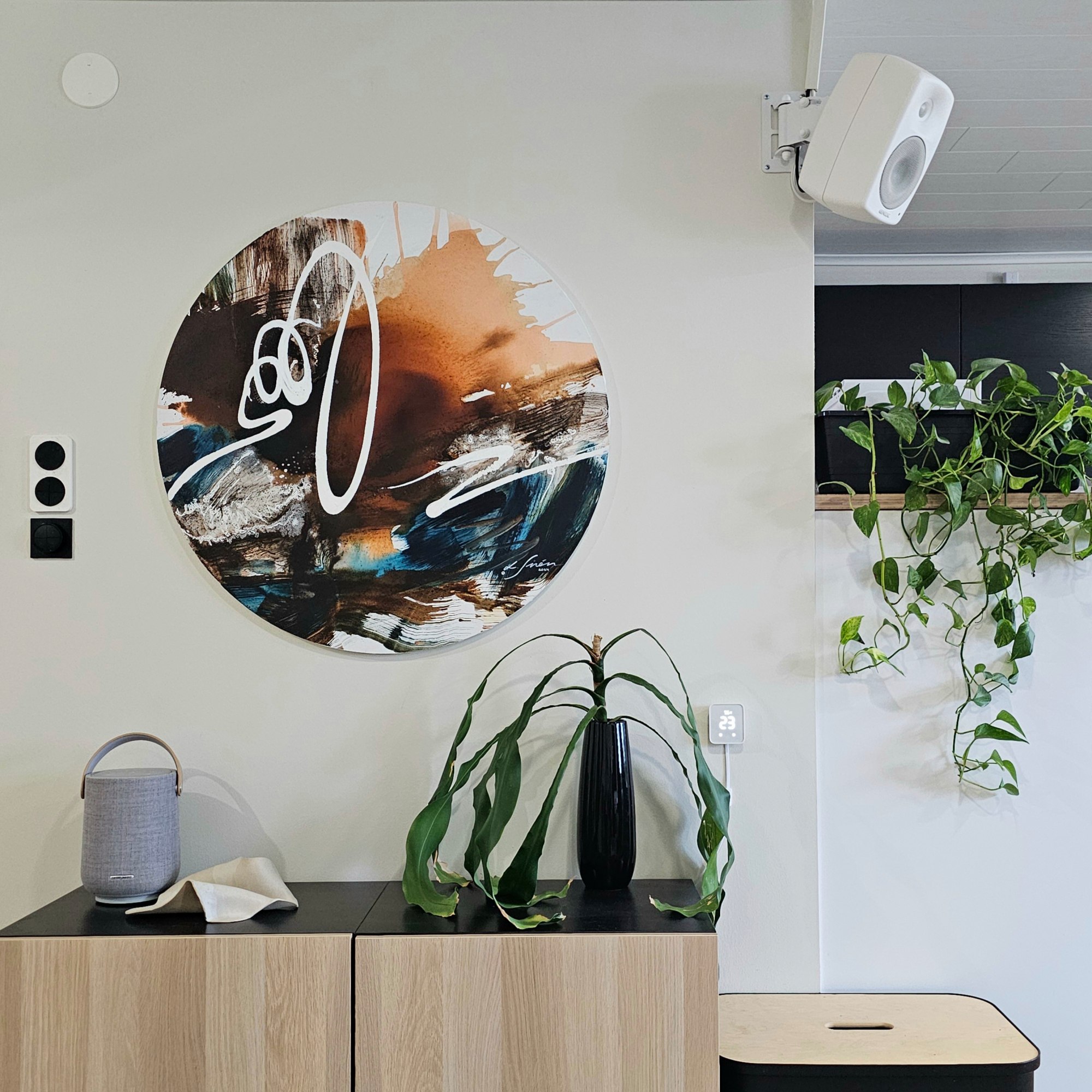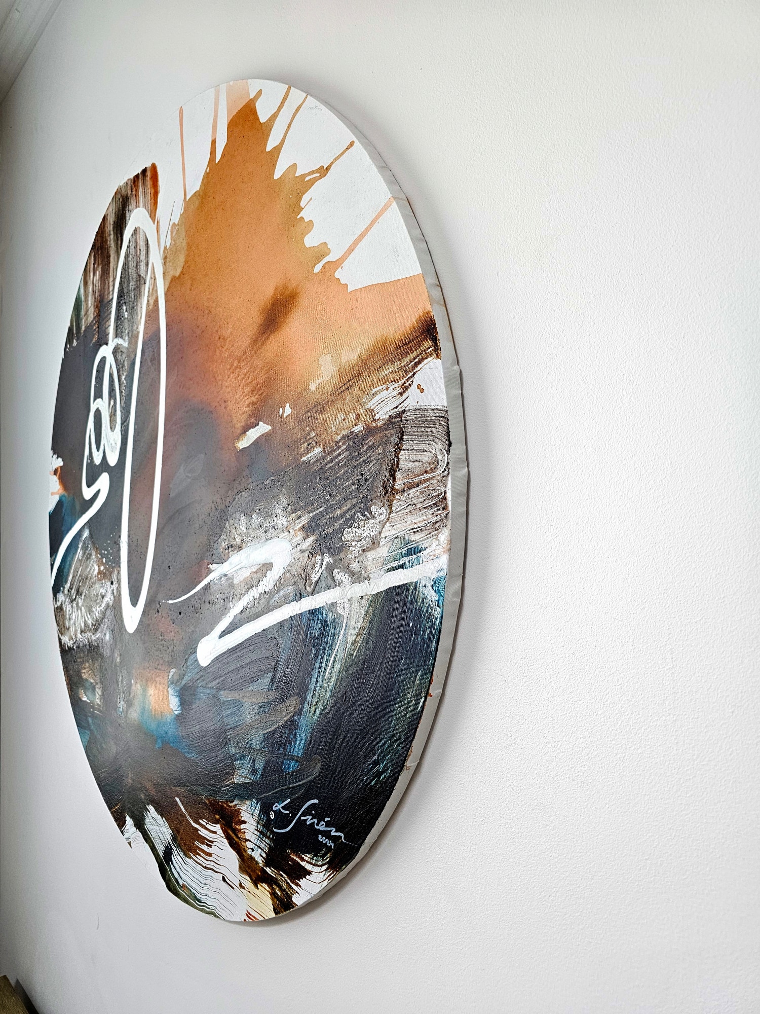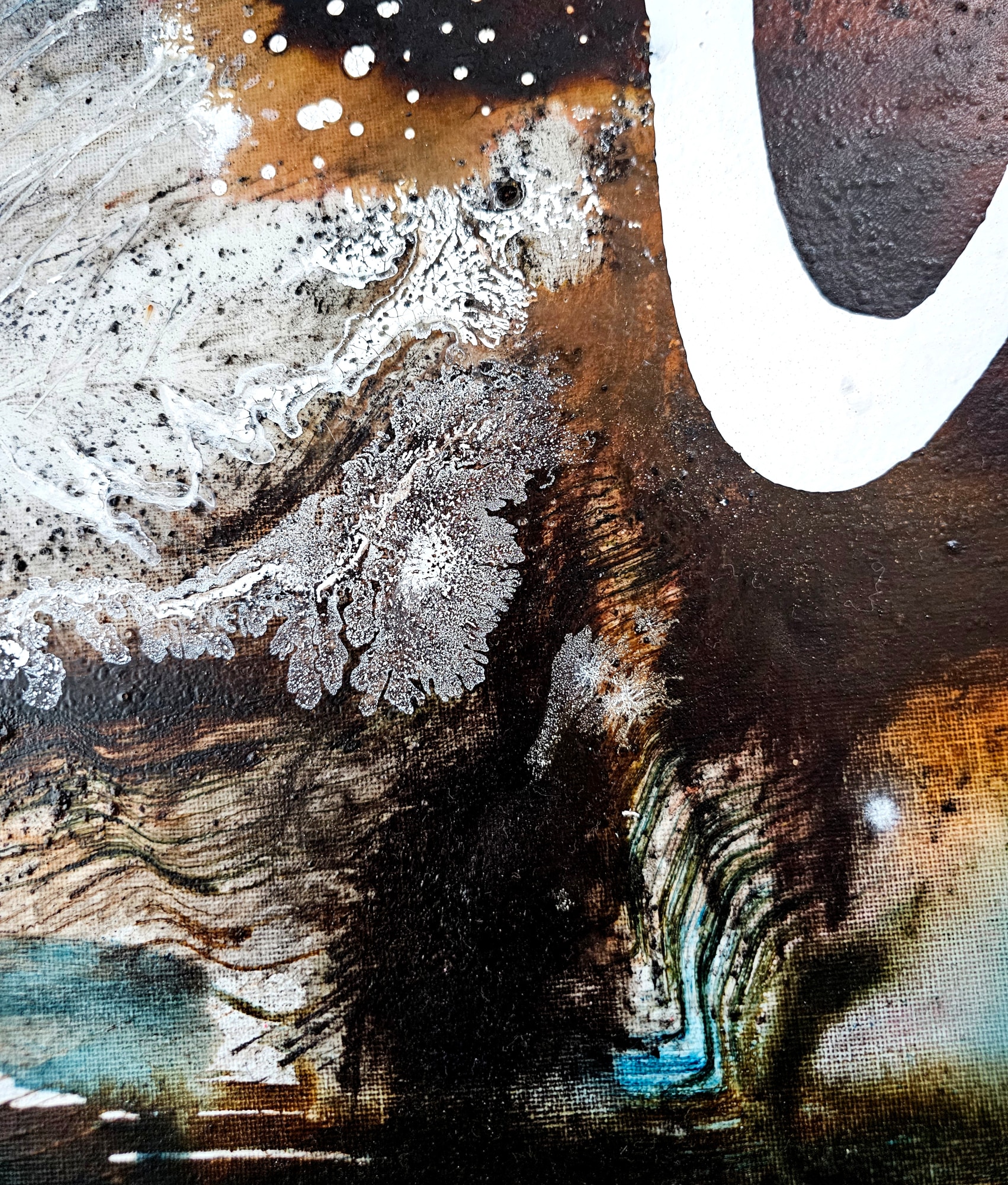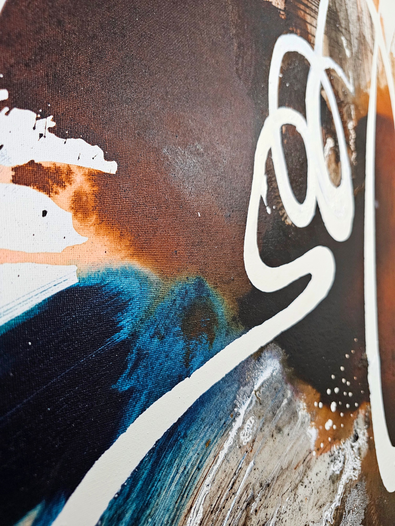 Delicious, vibrant and soulful abstract artwork with lots of movement and fluidity. This mixture of blue and orange let's your eyes dance through the canvas, wondering from detail to detail. Very intuitive and emotional. The title is spot on for this piece, even though I didn't even come up with it myself, but asked my friend what they thought when they looked at it. The title makes this piece whole.