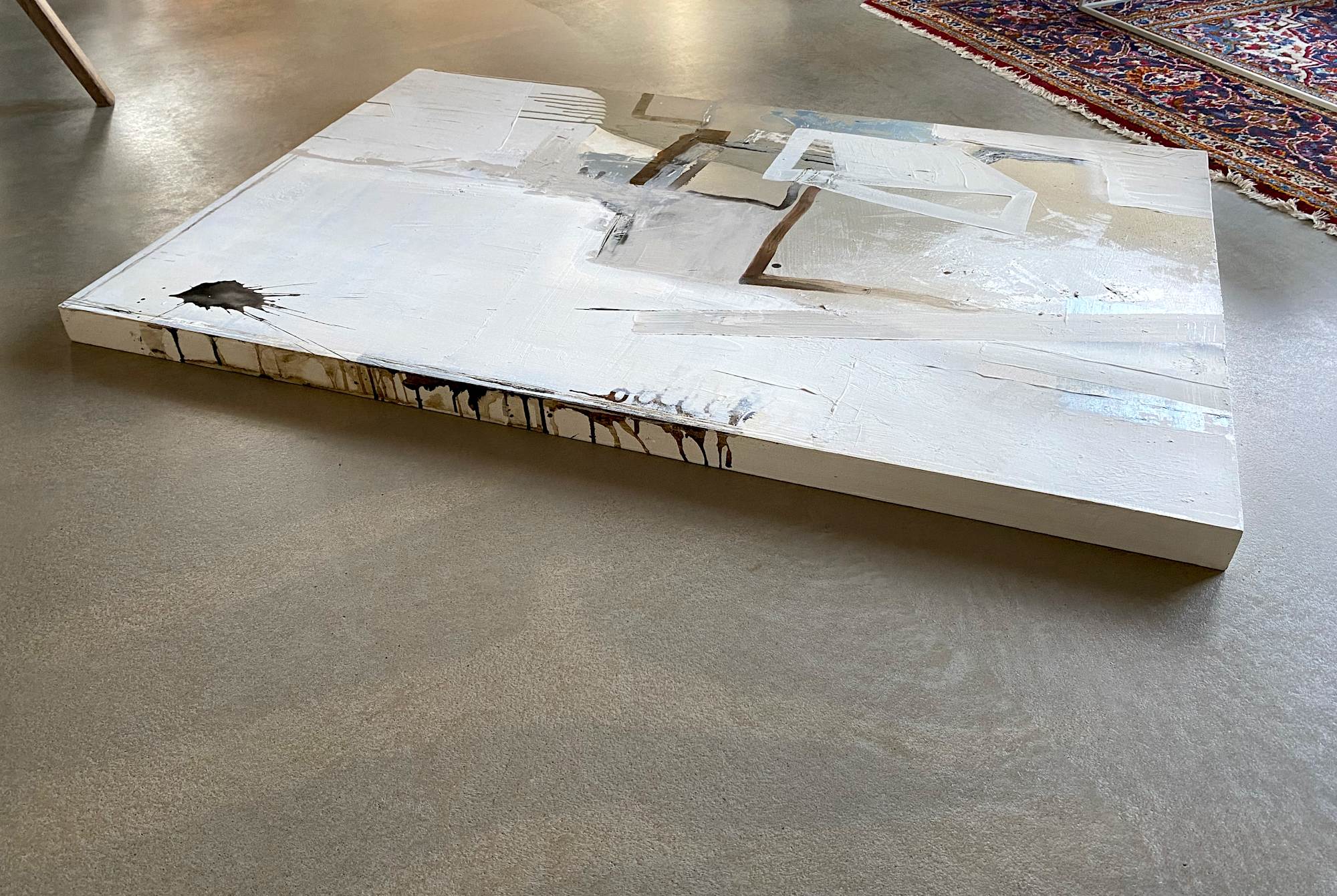 One of my favorite paintings! I love the luxurious, thick, custom-made plywood box this chic acrylic abstract is painted on. Natural shapes and smooth color transitions bring a calming effect. Blended with structured patterns to give you strenght and will-power like the black “shooting star “ up top. There’s tiny but mighty difference in shooting and soothing and this painting does them both.