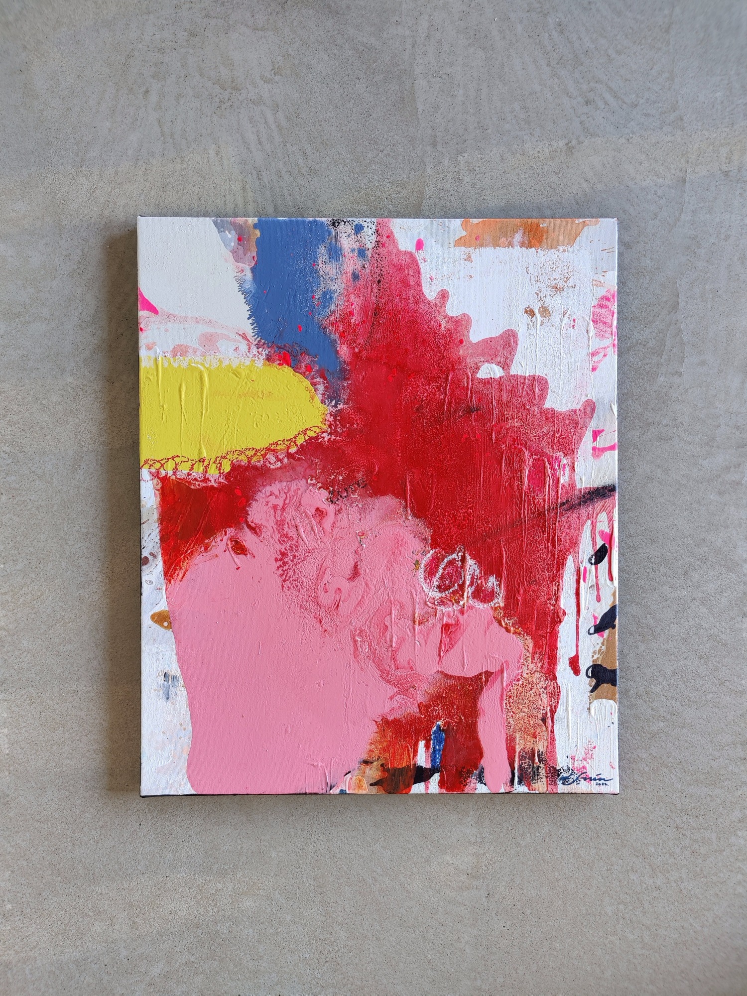I used to hate red but now I have a phase where I need to use it all the time. I want to paint something really bright and a bit irritating to keep things interesting. This is one of my boldest paintings in my opinion but maybe even my favorite at the moment. There's just something so quirky about it, in a good way.