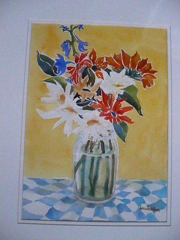 Using my flower cutouts to demo flowers in a glass vase. shown at Waggaman Library