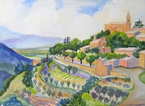 View of Montelcino in Tuscany, from wonderful trip there with my sister Helen in 2005