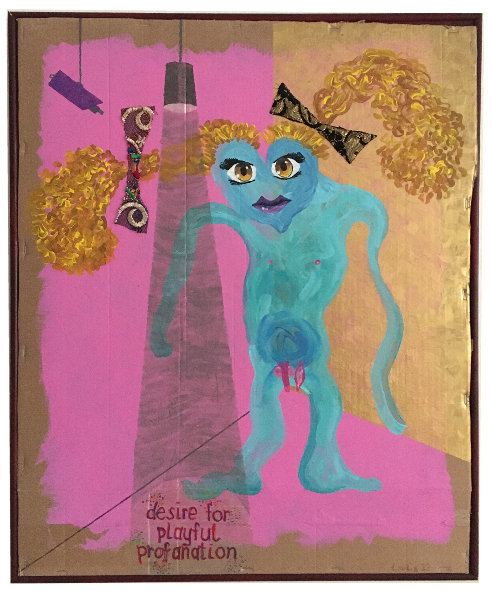 The paintings imagine different qualities of desire from a queer, non-binary perspective. They aim to inspire appropriate strategies for action, namely the playful profanation of social fetishes, courageous deviation from social norms, and radical unbecoming from the roles ascribed to us.