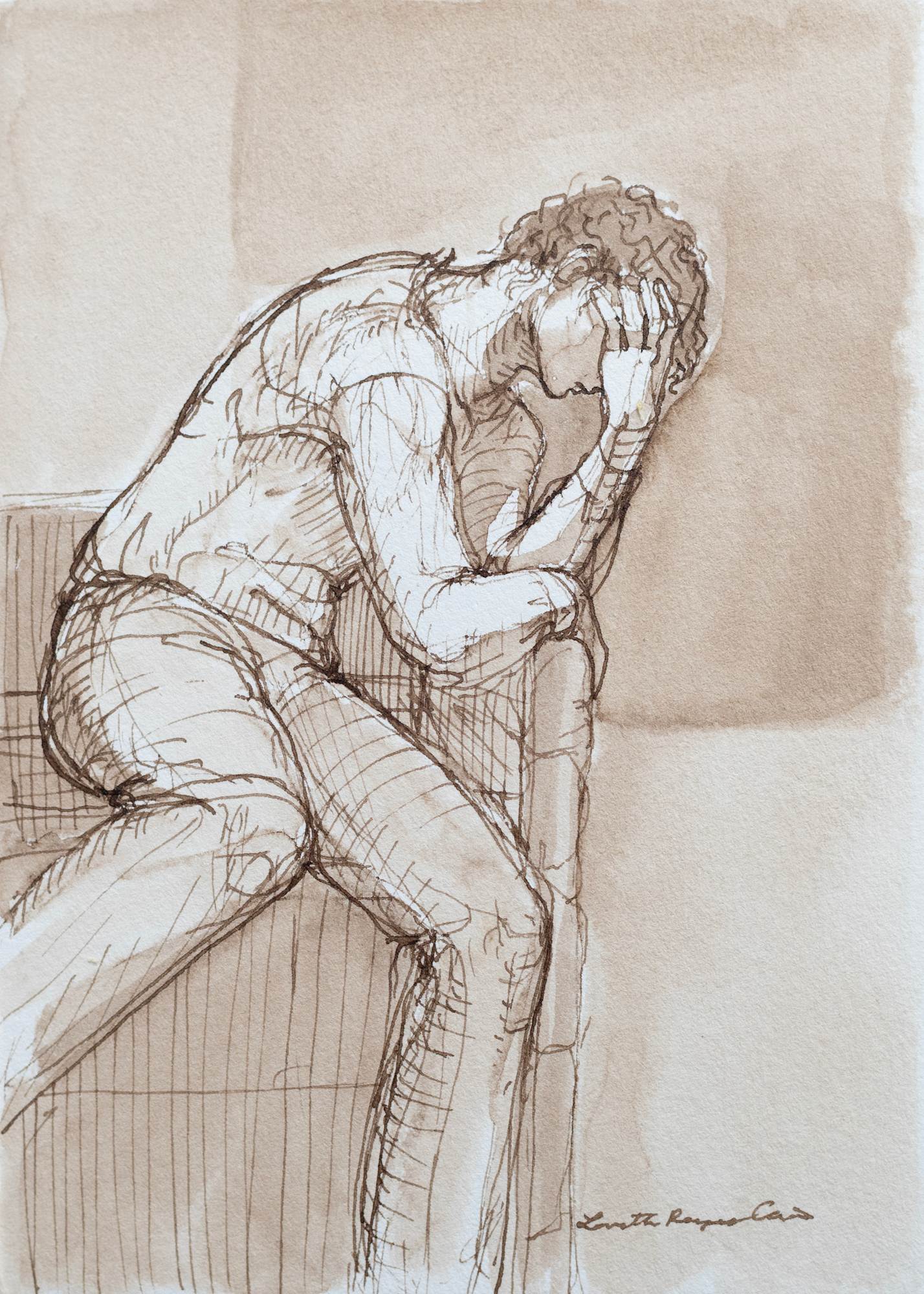I have been pondering how weeping can be a turning point in a story. The prince in this drawing is acknowledging grief or failure or something beyond his control. I see this as a necessary and strong part of a story.