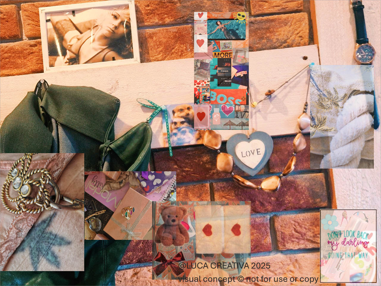 „SEKRETY BELLA” to zmysłowy kolaż cyfrowy oparty na fotografii i symbolice intymnych detali. Zawieszona na ścianie miłość, zapiski w pamiętniku, biżuteria, liściki – każda warstwa opowiada o kobiecej pamięci i ukrytych emocjach. To opowieść o bliskości i tajemnicy, o miękkości przeszłości, która wciąż tętni pod skórą.
