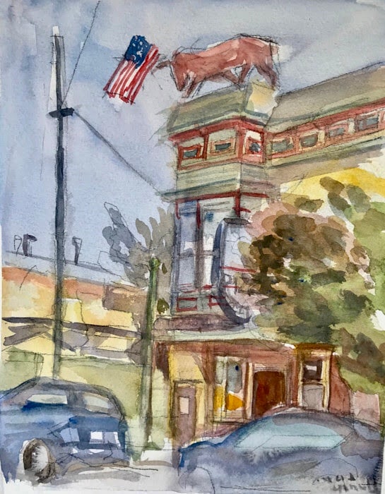 Plein air painting done in 2022 on 24th Street, Noe Valley, San Francisco in front of the well known Italian restaurant.
