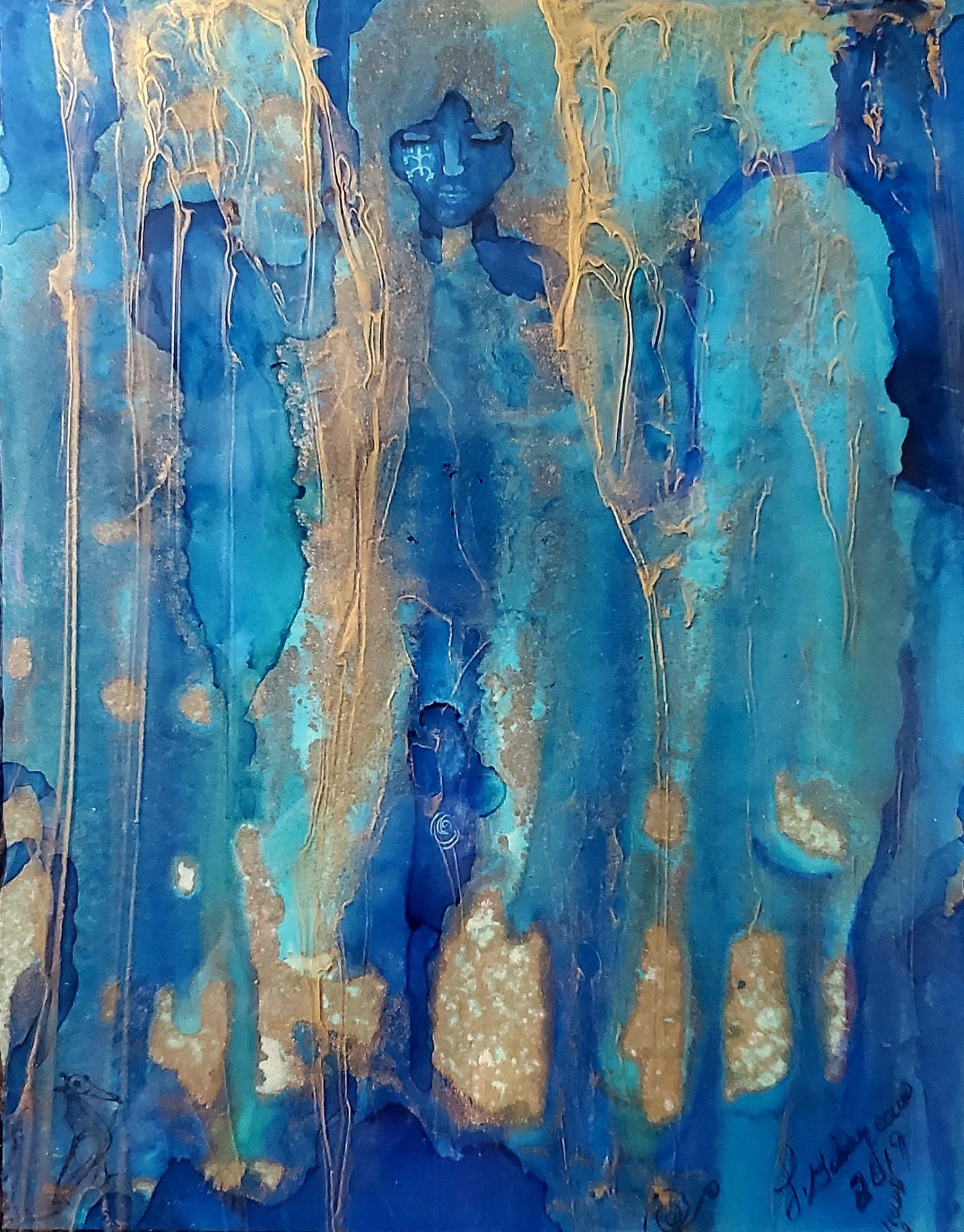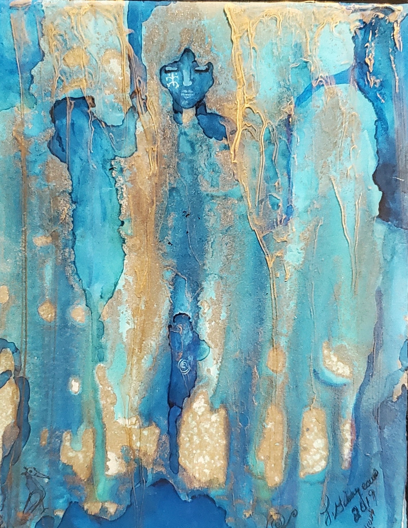 Alcohol Ink and Resin layered on Artist's limited print from original. Applied over wood panel.