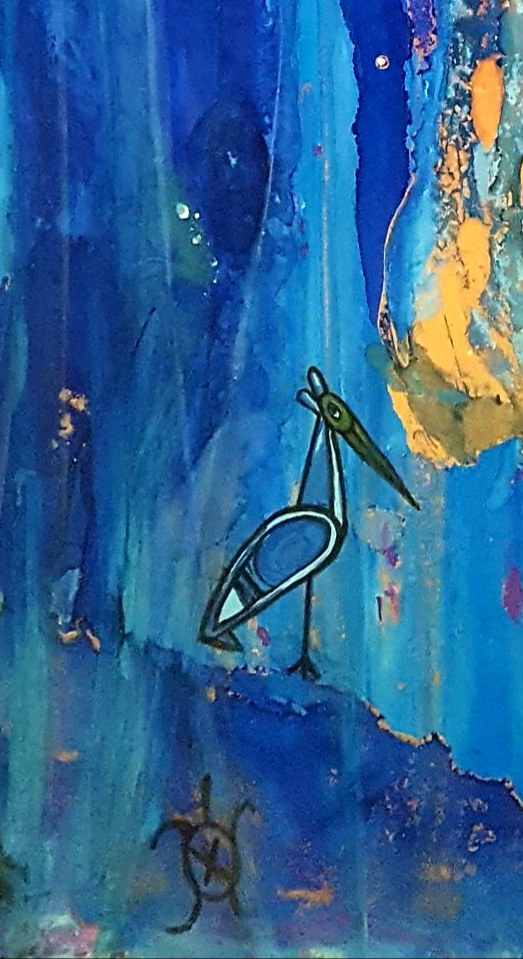 This piece is an expression of embracing my identity with my Taino indigenous culture and a language legacy from my grandmother. She used Taino words like "batey" and "ditas" and "jicotea".