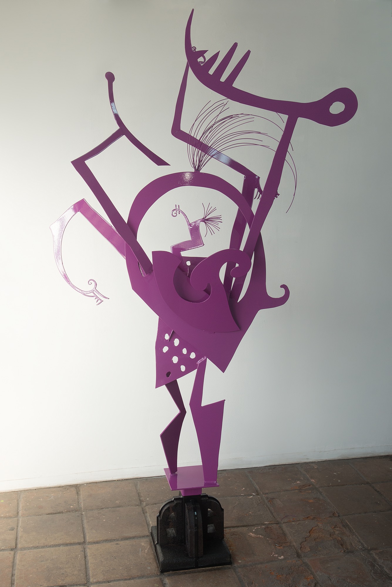 The sculptures will be from 60 to 84 inches tall made of iron, with bases of concrete 24x24x14 inches, "powder baked painted" with bright colors in my opinion matching their personalities.