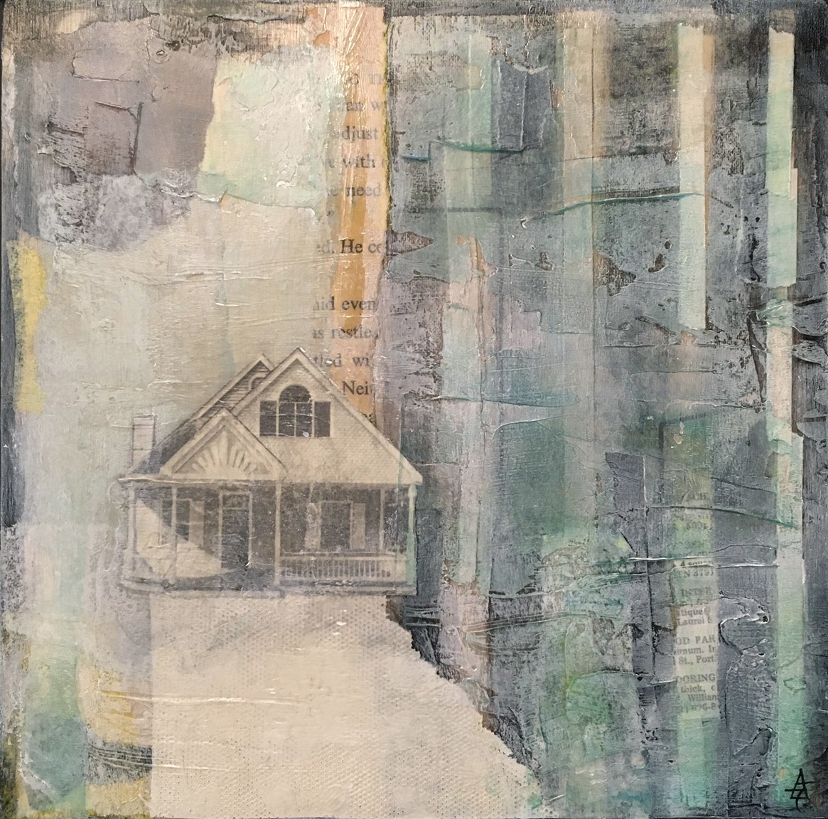 mixed media, vintage papers, paper, acrylic medium, acrylic, book paper on wood panel