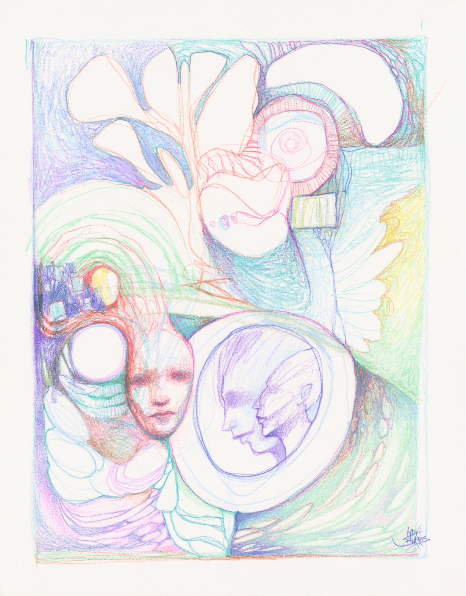 This piece was created through automatism - I just put my pencils to paper and started going until I was finished, with no plan. This was the result.
