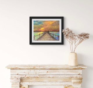This artwork seamlessly combines technique and emotional depth, showcasing the artist's ability to manipulate perspective and light to create a visually engaging and meditative scene. It is a celebration of natural beauty and human craftsmanship, making it an ideal fit for a collection focused on landscapes or works that evoke a sense of peaceful escape.