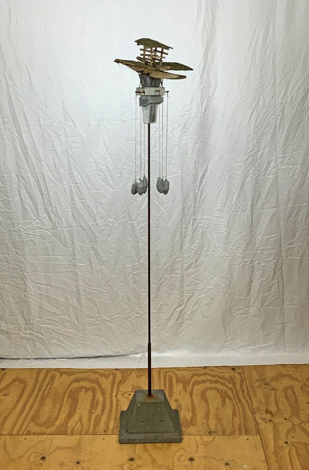 Wood, concrete, string, hardware