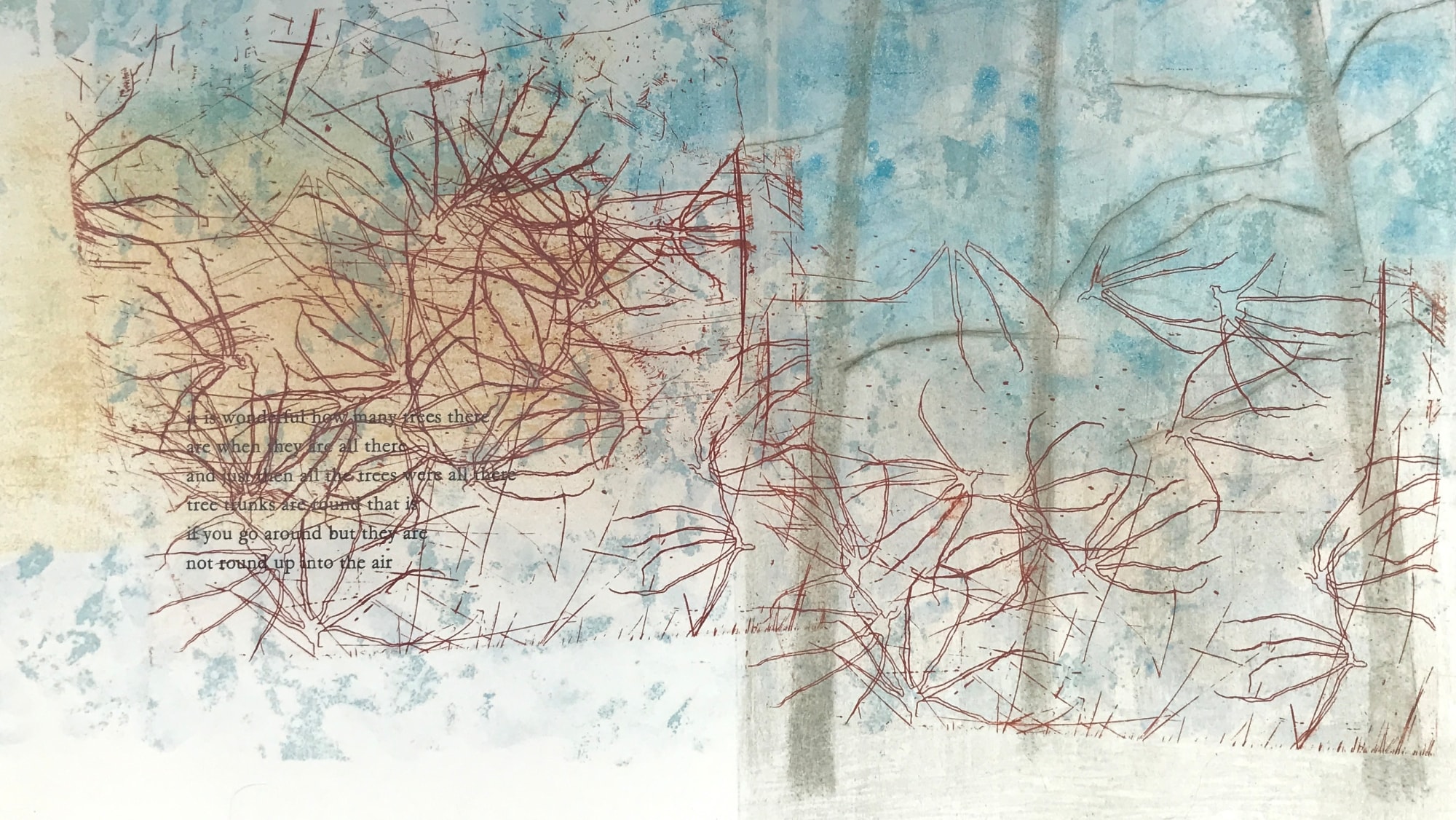 Color intaglio, drypoint, burnished mica, letterpress, Hahnemuhle paper
