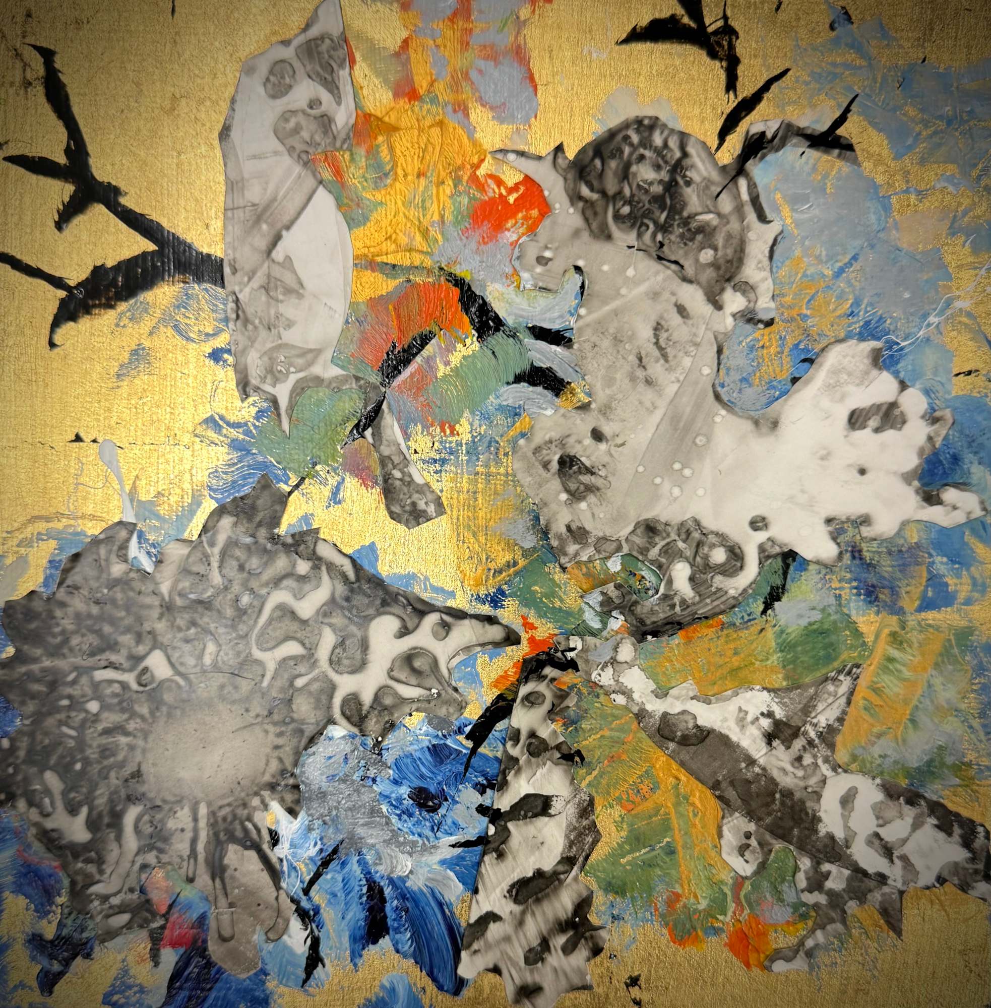 Metal Leaf, Acrylic, Yupo, polymer mediums, oil pastel on birch panel