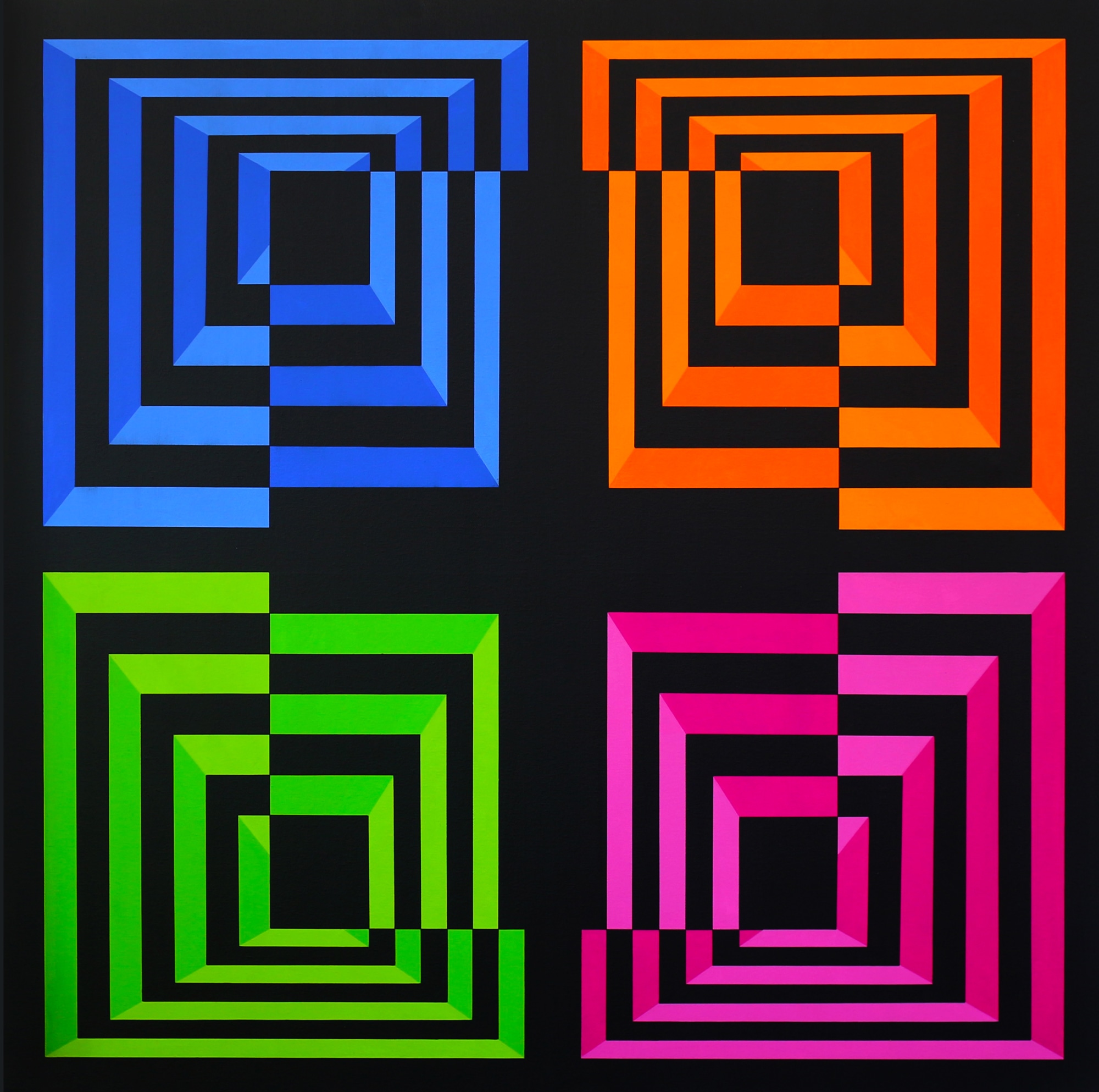 Hard-edge Geometric Paintings and Limited Edition Modernist Block Prints