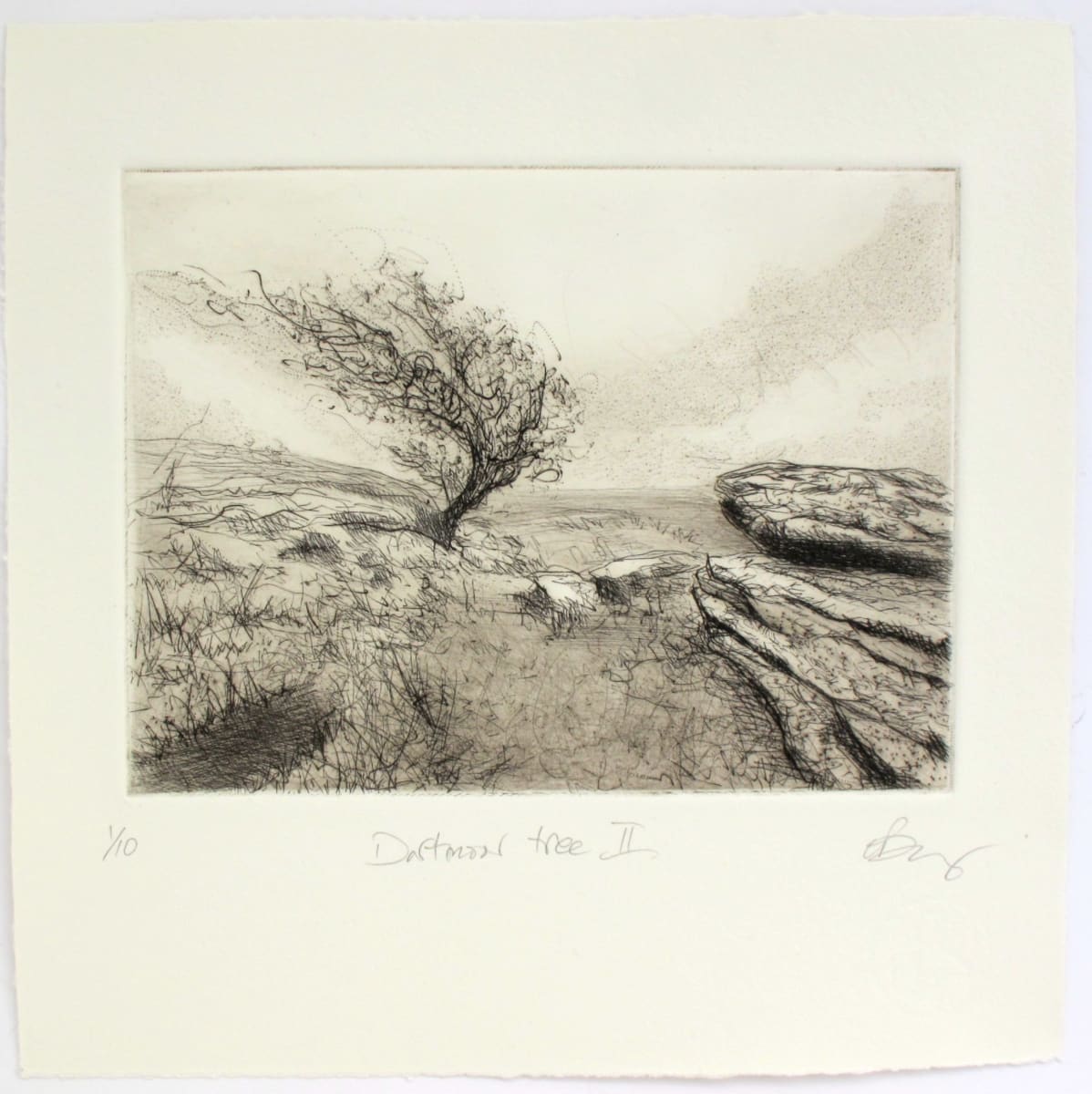 Dartmoor Tree II Drypoint in sepia on Hahnemühle etching paper